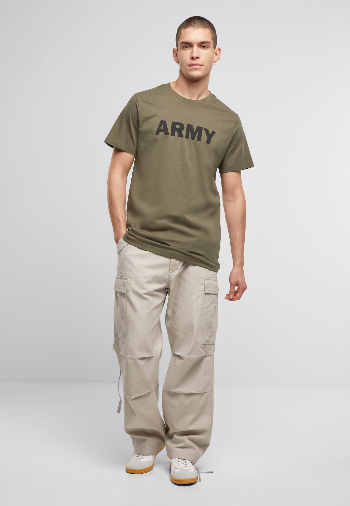 hautfreundliches Baumwollmaterial / 160g je m² / bequemer Schnitt mit hohem Tragekomfort / Rundhalsausschnitt / ARMY-Print auf der Brust