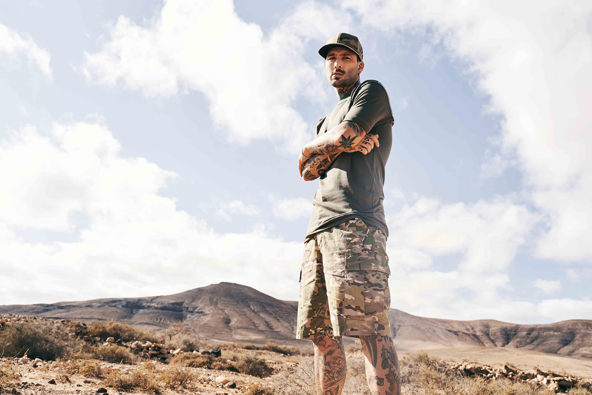 robustes Ripstop Material / bequemer Schnitt / Knopfleiste / zwei seitliche Einschubtaschen / zwei große Cargotaschen / zwei Gesäßtaschen / weitenregulierbarer Bund