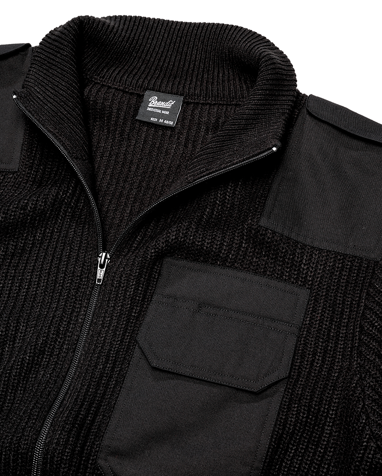 BW Cardigan / Perfekte Mischung aus BW Pullover und Marine Troyer / Dicker Kragen / Front-Reissverschluss / Schulterklappen / Brusttasche / Strickbündchen an Ärmel- und Bundabschluss / Klettpatches an den Oberarmen