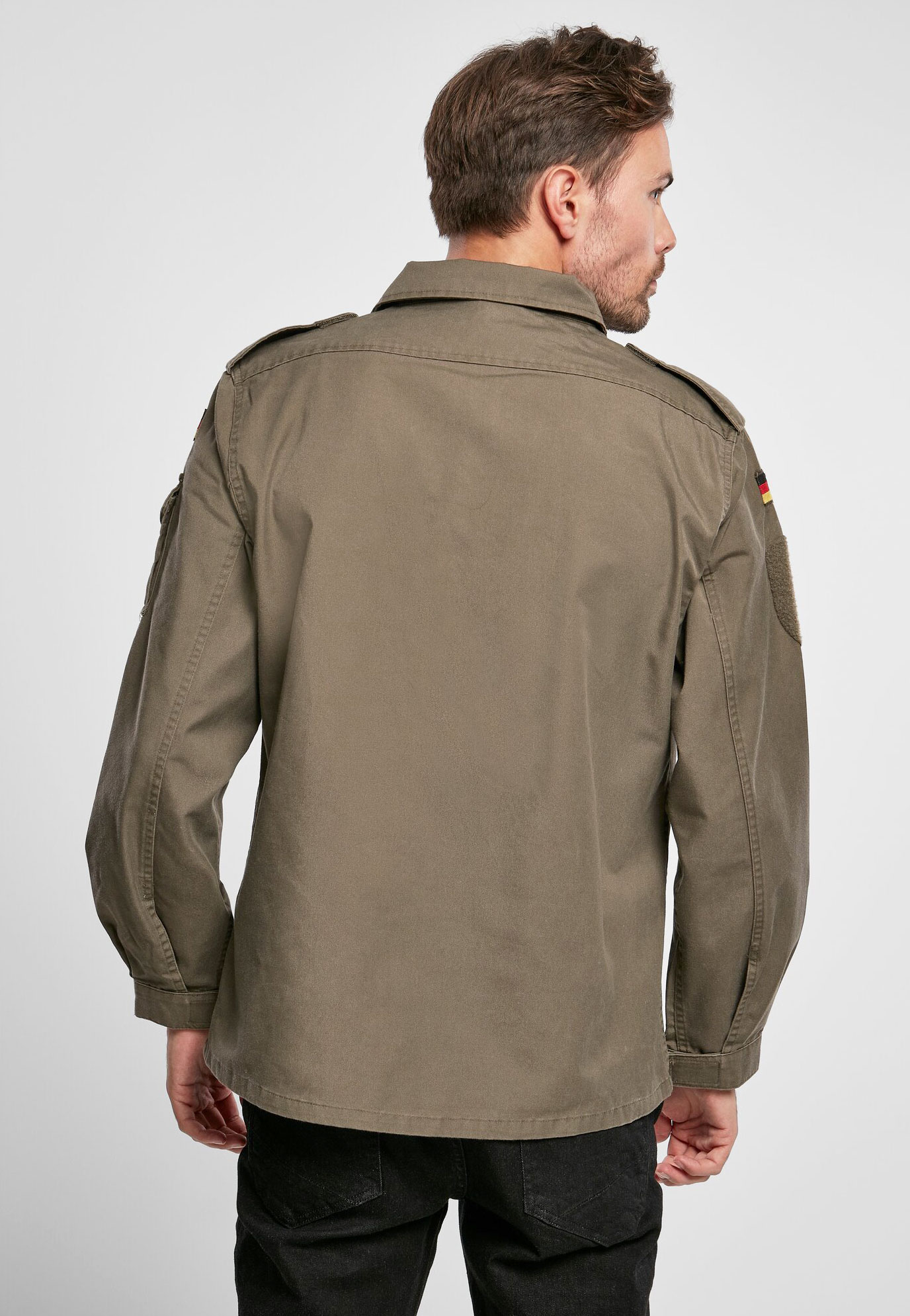 strapazierfähiges Mischgewebe / zwei Brusttaschen mit Druckknopfverschluss / Oberarmtasche mit Druckknopverschluss / Patch-Fläche auf Brust und Oberarm / robuster Frontreißverschluss / Hoheitsabzeichen auf beiden Armen / Windschutzleiste mit Druckknopfverschluss / Schulterklappen mit Klettverschluss / Ärmelabschlüsse mit Klettverschluss