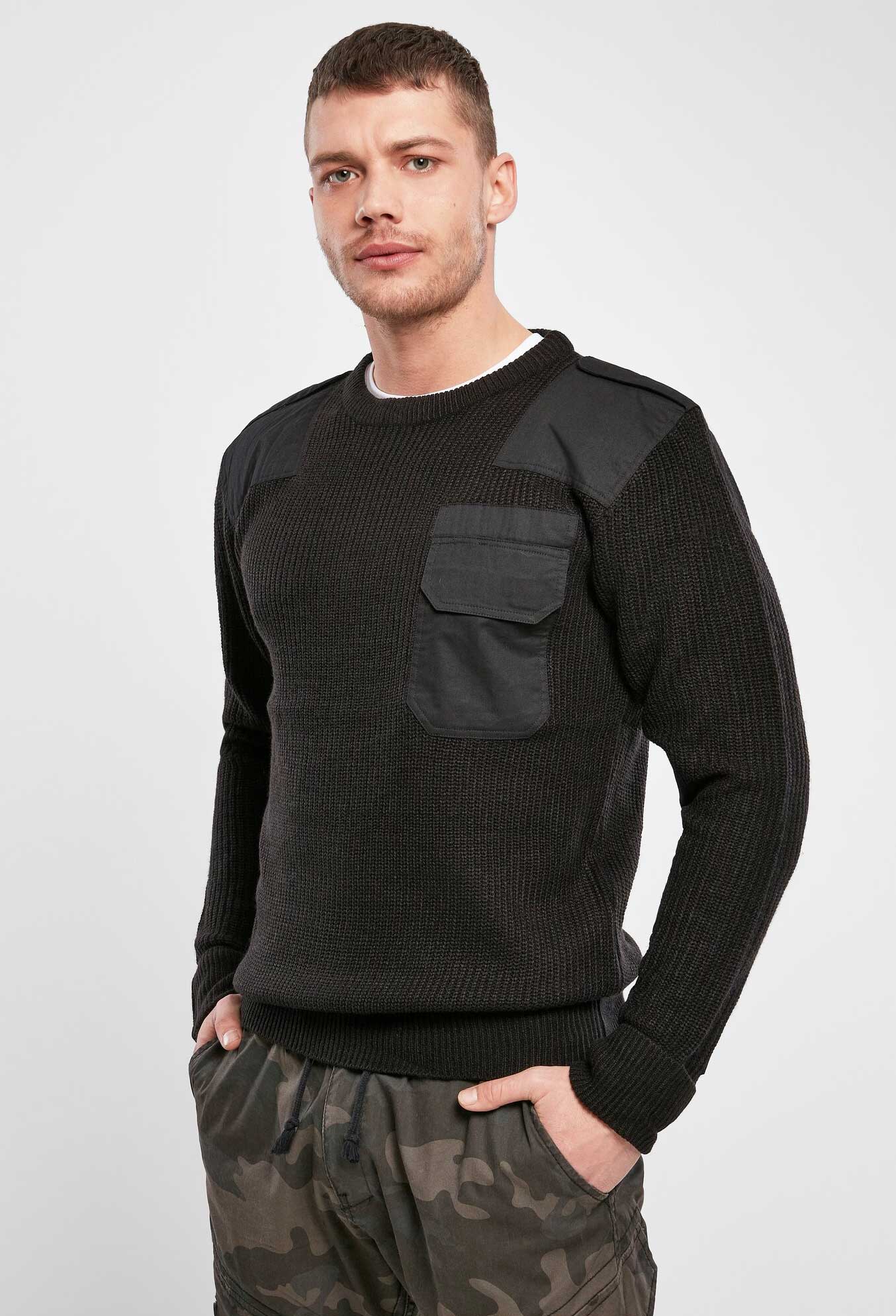 verstärkte, robuste Ellenbogenpartie / verstärkte, robuste Schulterpartie / Schulterklappen mit Klettverschluss / aufgesetzte Brusttasche mit Klettverschluss und Stift-Tasche / Strickbündchen an Ärmel- und Bundabschluss