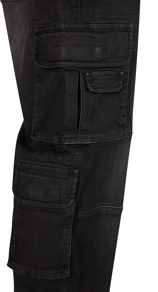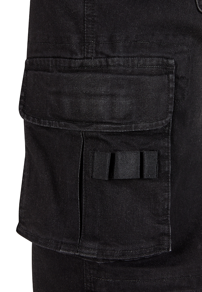 Cargo Denim Pants / 2 Einschubtaschen / 2 aufgesetzte Gesäßtaschen / 4 seitlich aufgesetzte Beintaschen / Tunnelzug am Beinende
