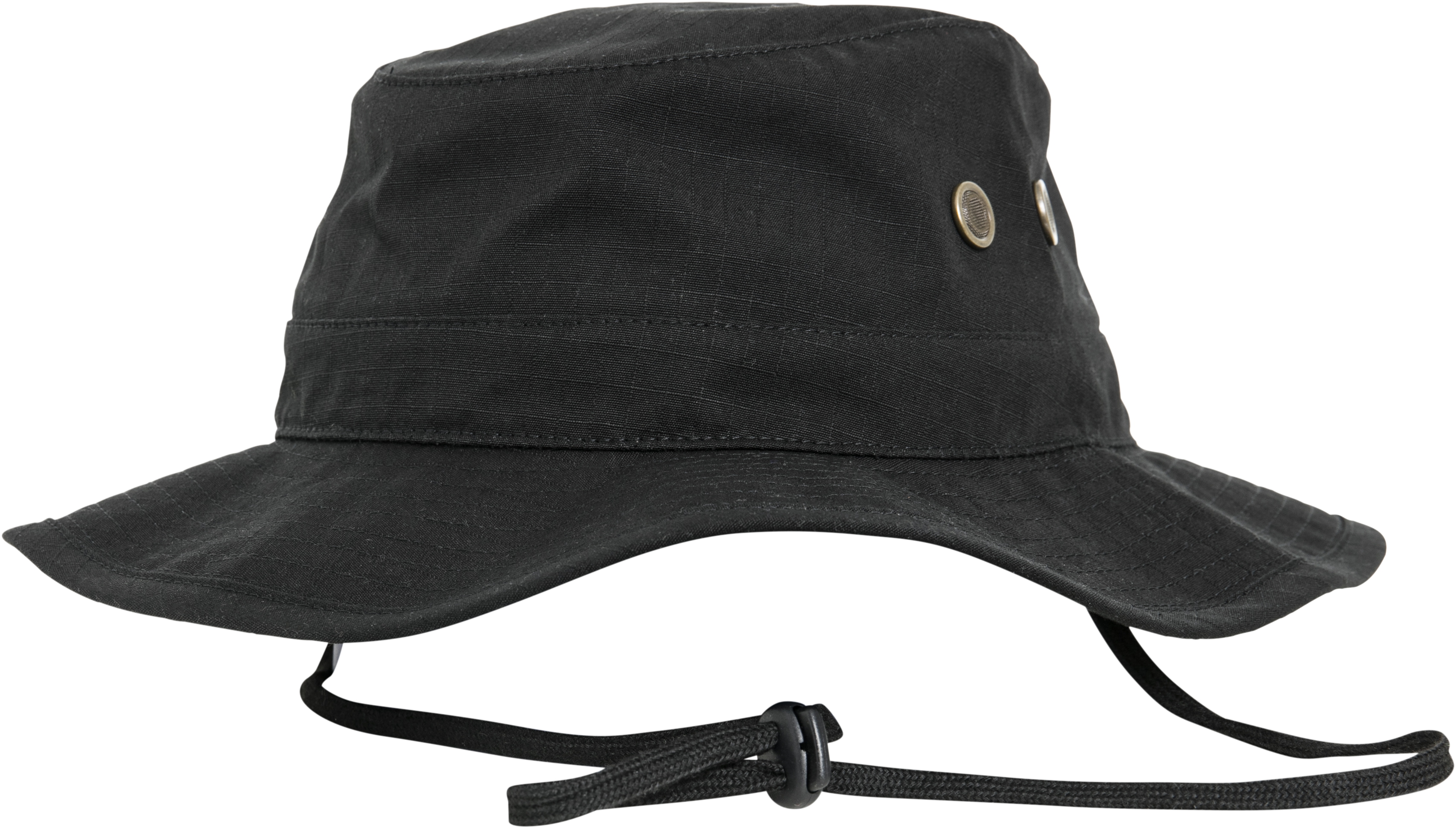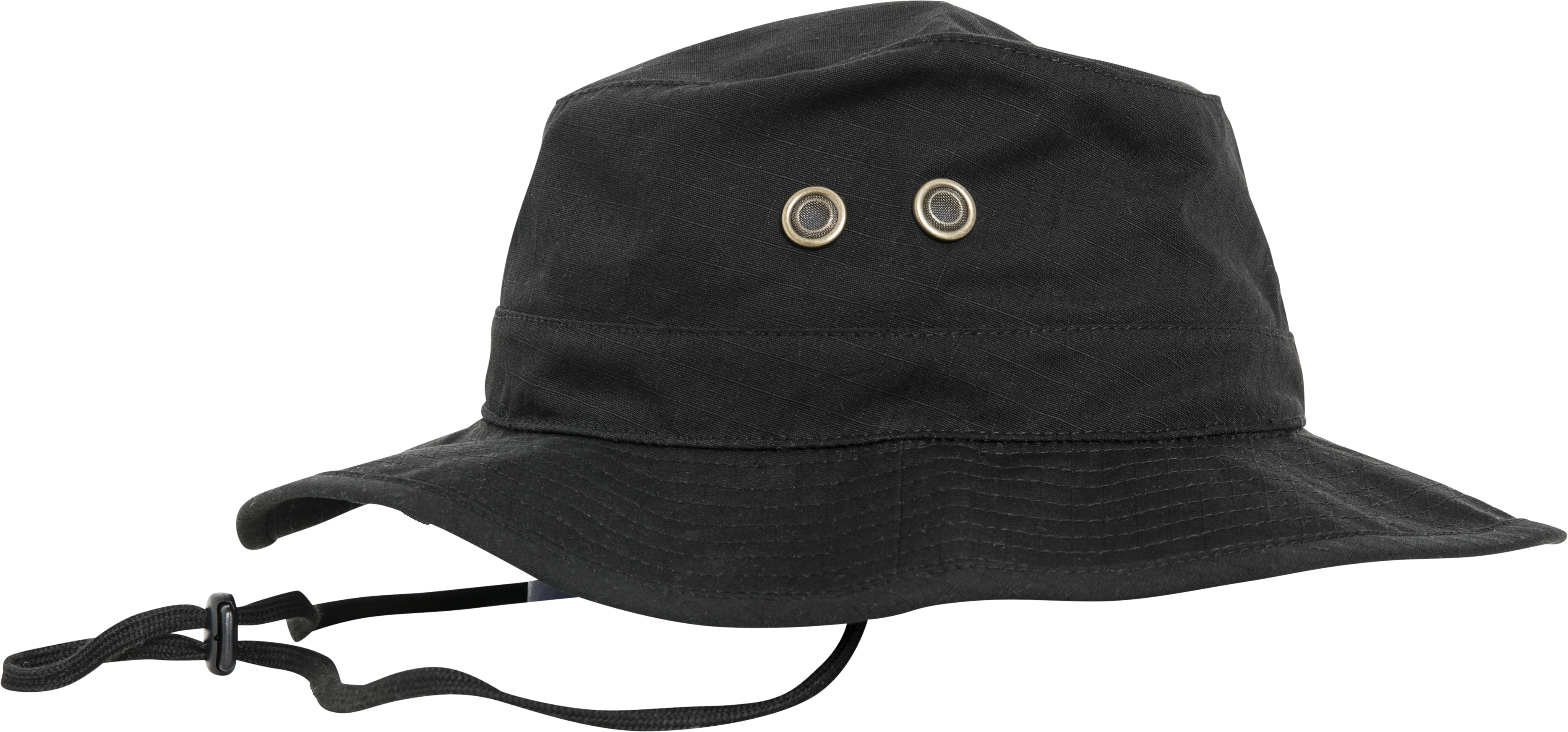 hochwertiges Ripstop Material / Belüftungsösen aus Metall / breite Krempe mit Ziernähten und Druckknopfverschluss / Hutschnur inkl. Stopper