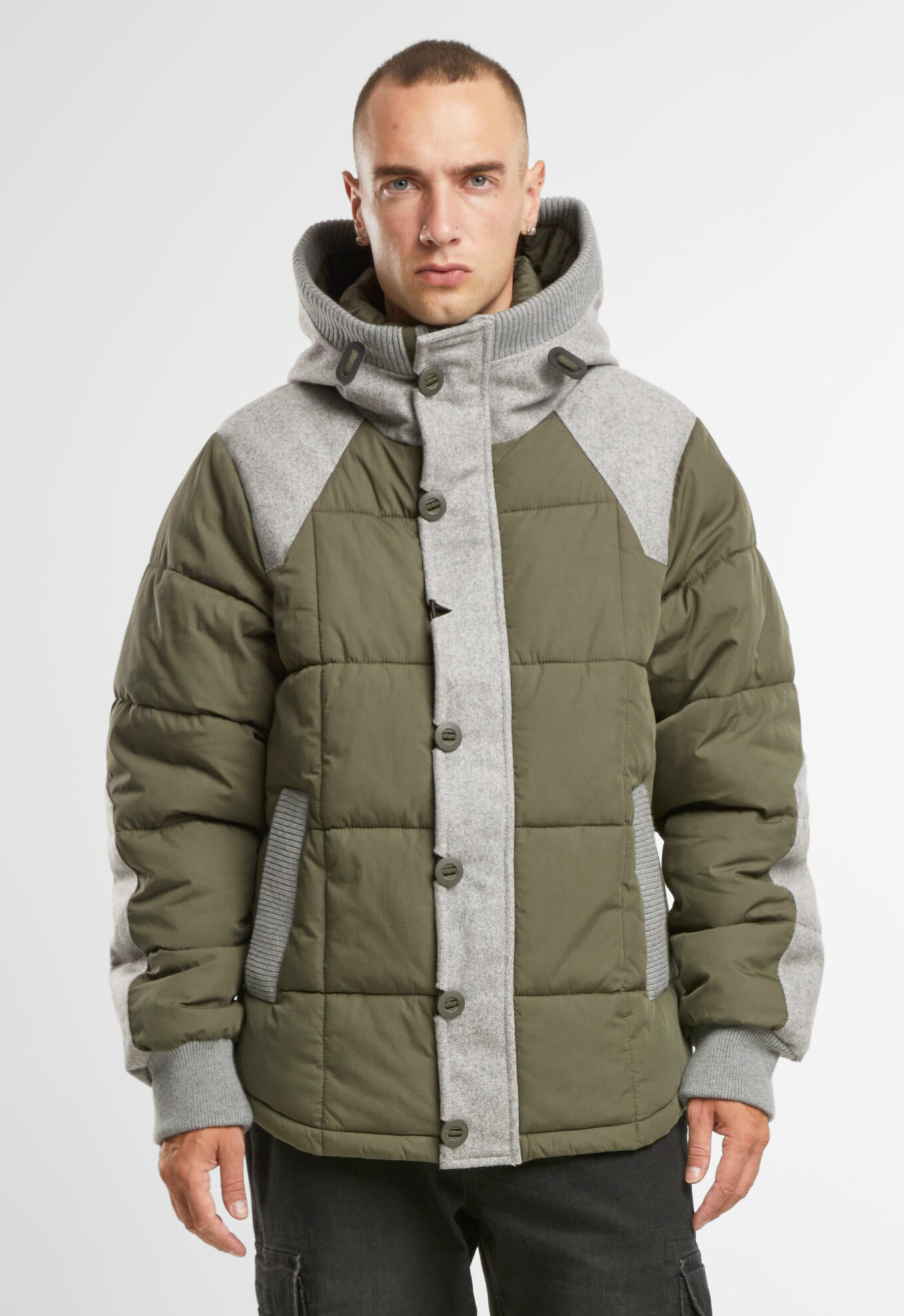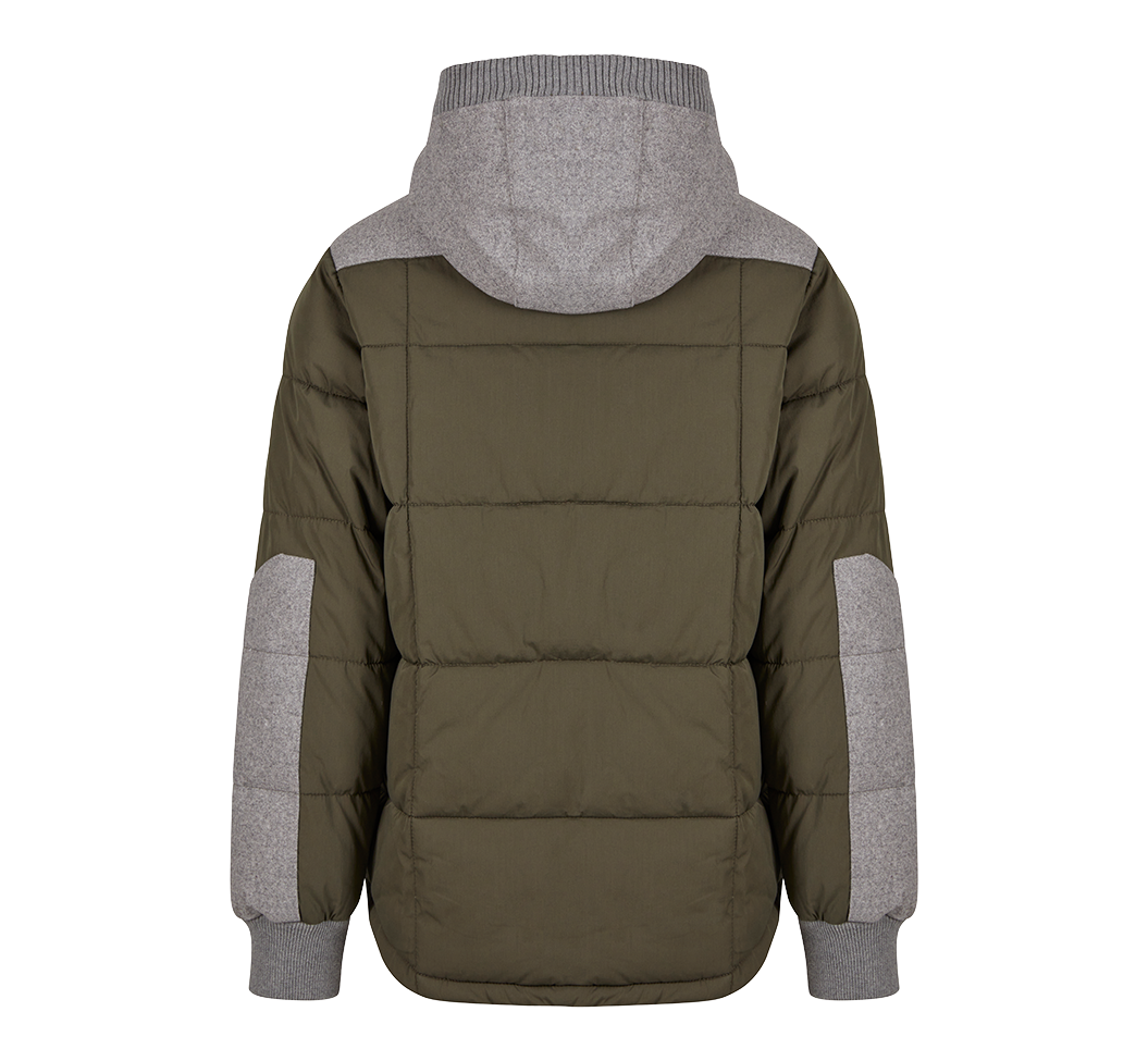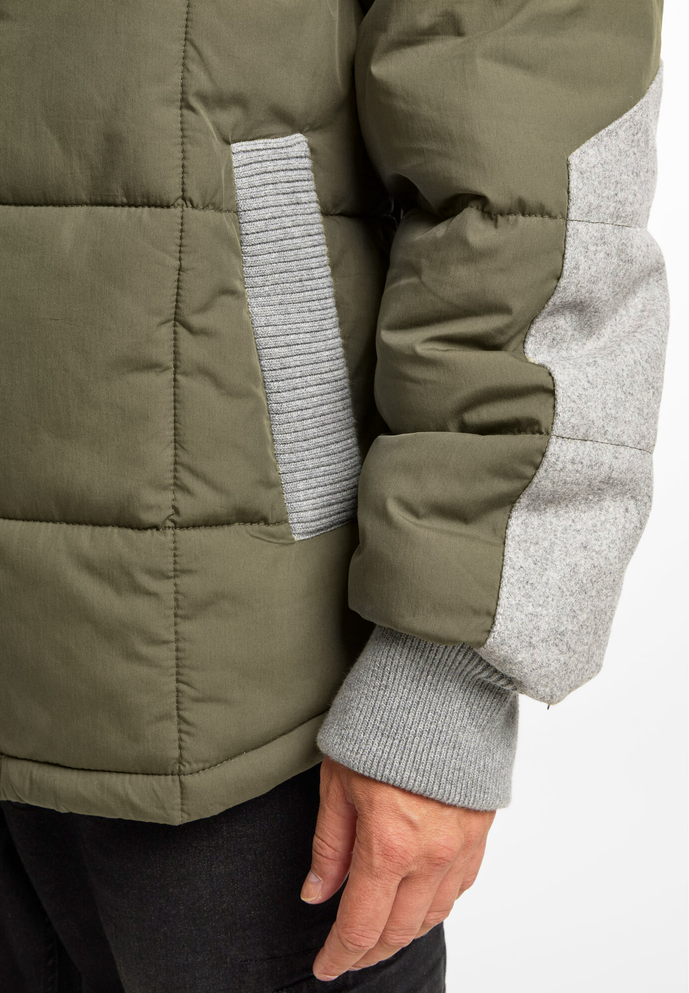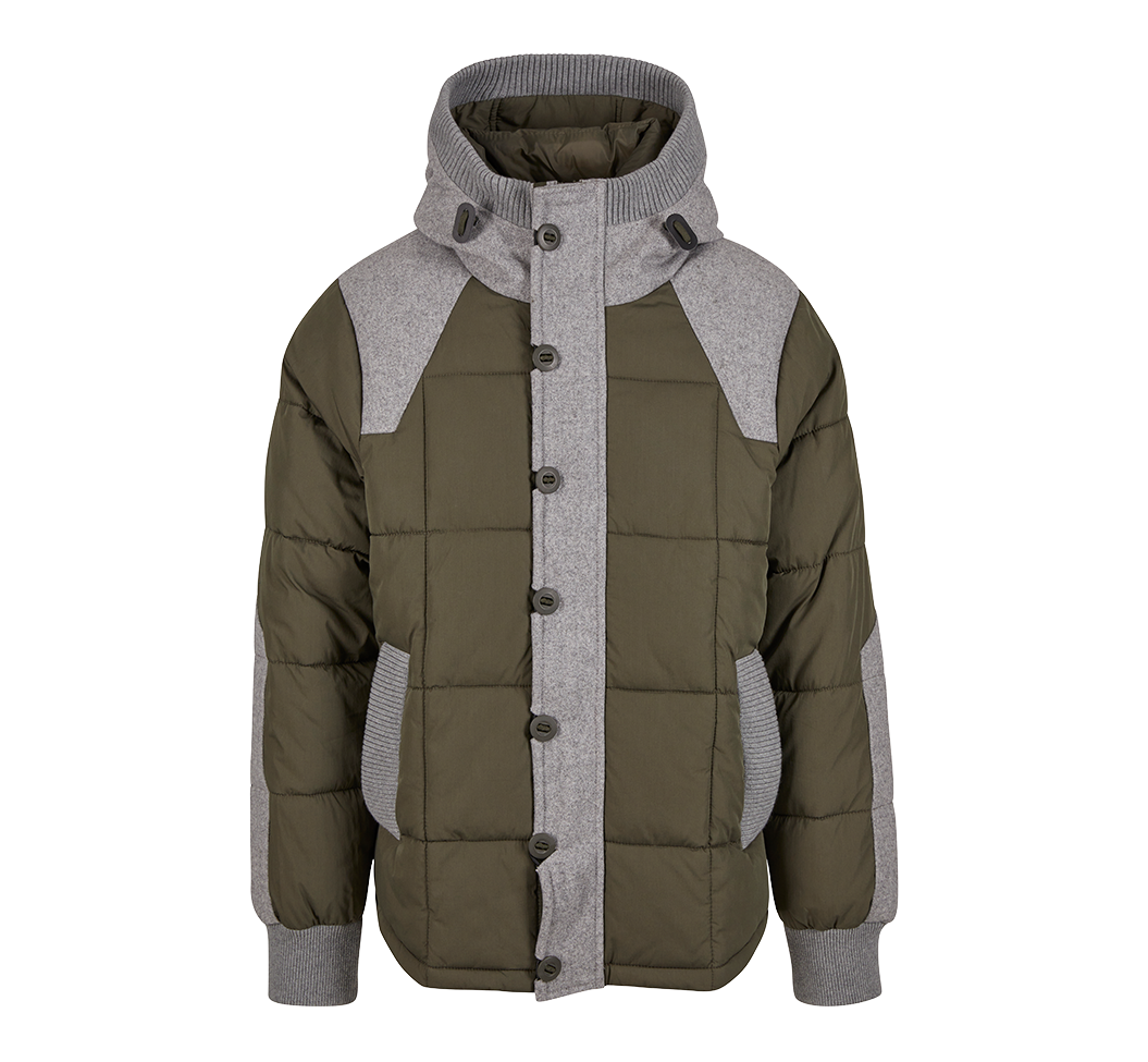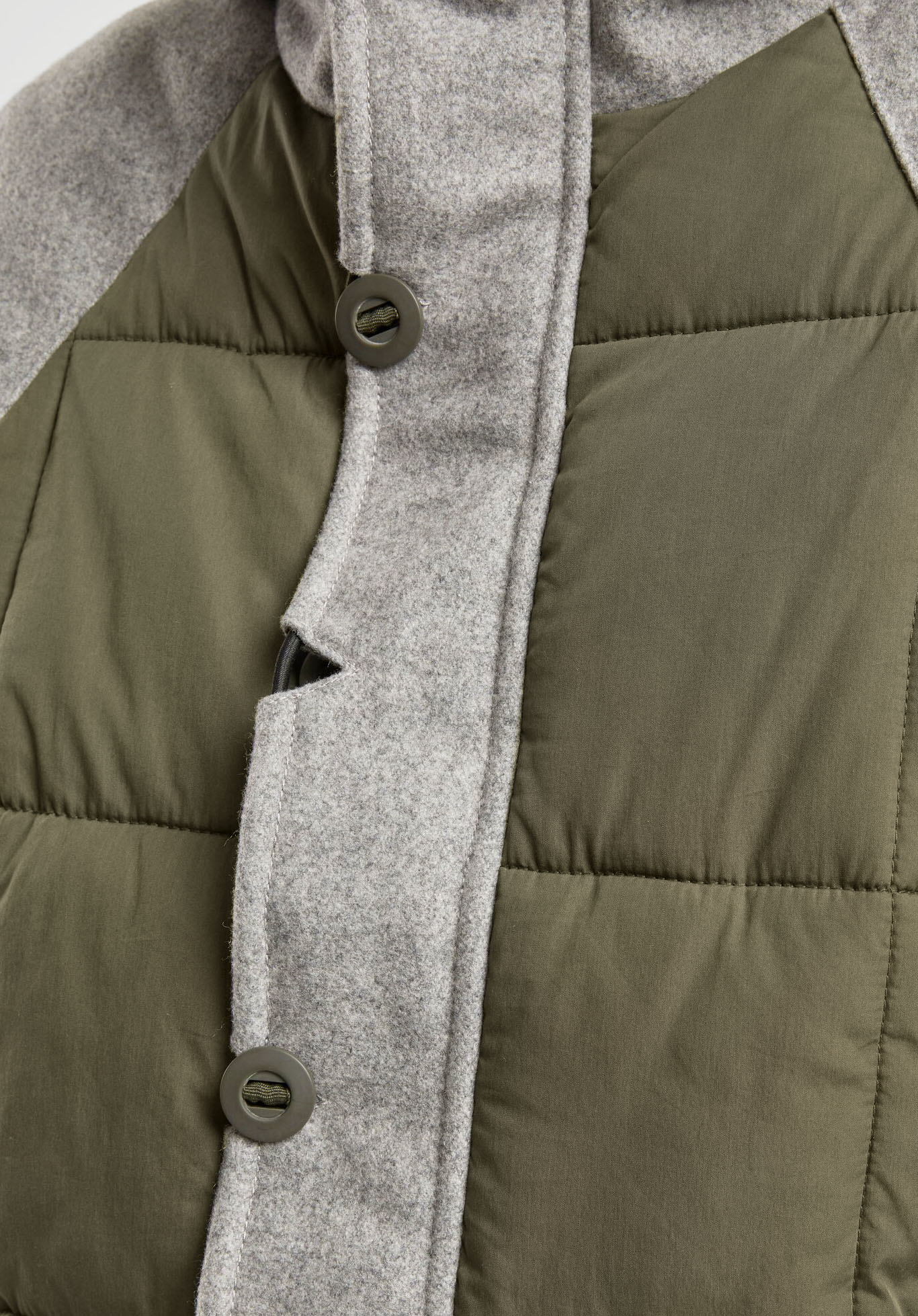 Steppjacke mit warmer Wattierung / Materialmix mit Kontrasteinsätzen aus Wollstoff / Gefütterte Kapuze / Kordelzug / Innenliegender Kragen / Hochwertiger Reissverschluss / Abgesetzte Windschutzleiste / Ärmelabschluss mit Rippstrickbündchen / 2 Einschubtaschen / Innentasche mit Klett / Optimaler Begleiter für kalte Tage