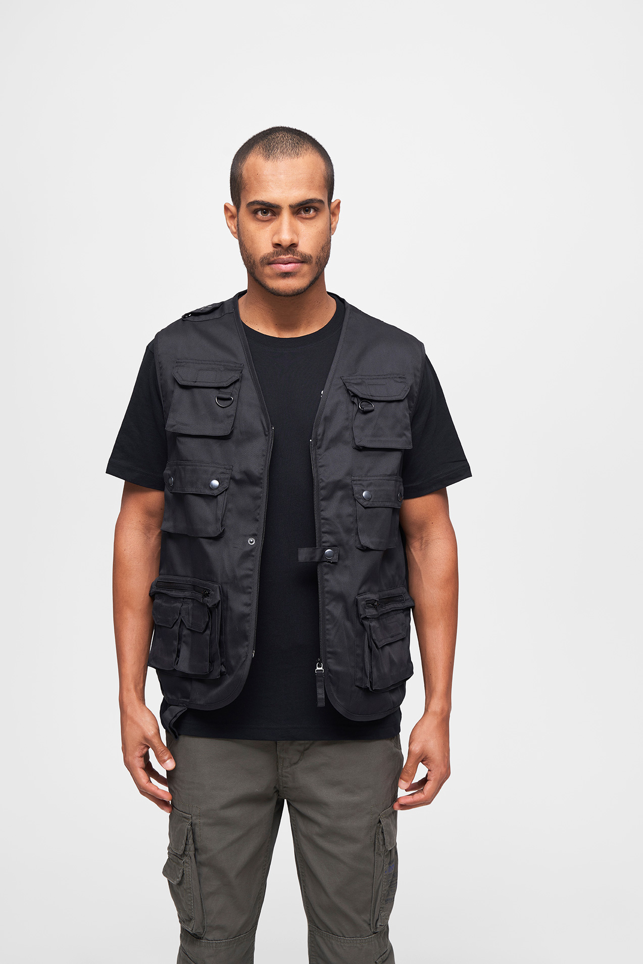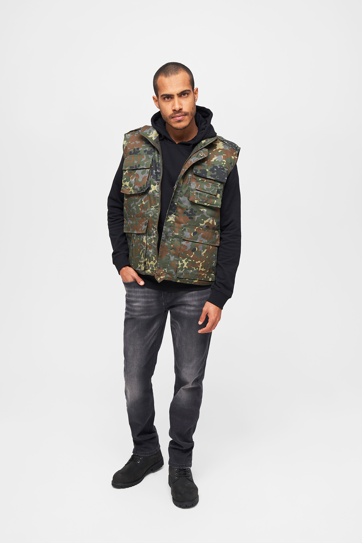 9 Fronttaschen mit Druckknöpfen und Reverse-Reißverschlüssen / 1 große Rückentasche mit seitlichem Reißverschluss / 3 Innentaschen mit Klett- und Reißverschluss / 3 D-Ringe zum Anbringen von Ausrüstungsgegenständen / kurze Schulterklappe für Gewehrriemen / strapazierfähiges Mischgewebe / doppellagiges Außenmaterial / stabiler Frontreißverschluss / Druckknopfsicherung inkl. Schlaufe