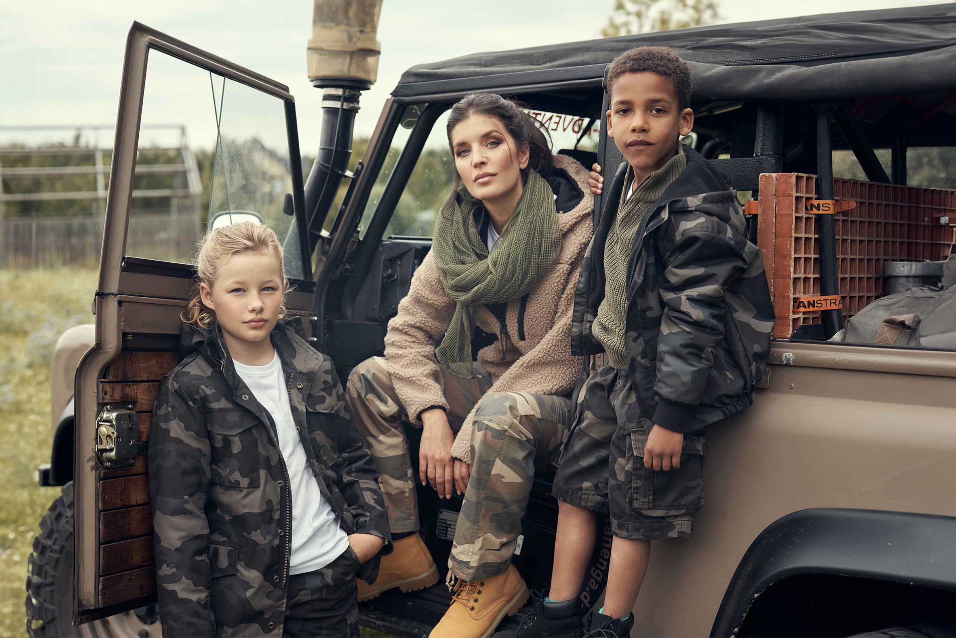 zeitlose Kinderjacke nach Original M65 Vorbild / wasserabweisendes, robustes Mischgewebe / austrennbare, warme Innenjacke / 4 praktische Taschen mit Druckknopfverschluss / versteckte Kapuze im Kragen / Armabschluss mit Klettverschluss