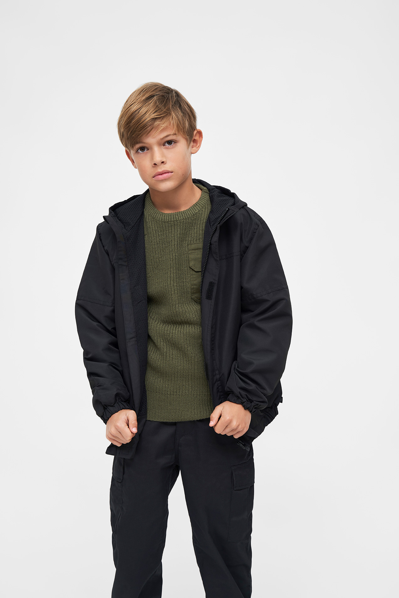 Sommer-Windbreaker für Kids &Teens / wind- und wasserabweisendes Außenmaterial / atmungsaktives Mesh-Innenfutter / stabiler Frontreißverschluss / Windschutzleiste mit Klettverschluss / Kapuze mit Gummizug / Armabschluss mit Gummizug / zwei seitliche Einschubtaschen mit Reißverschluss / Innentasche mit Klettverschluss