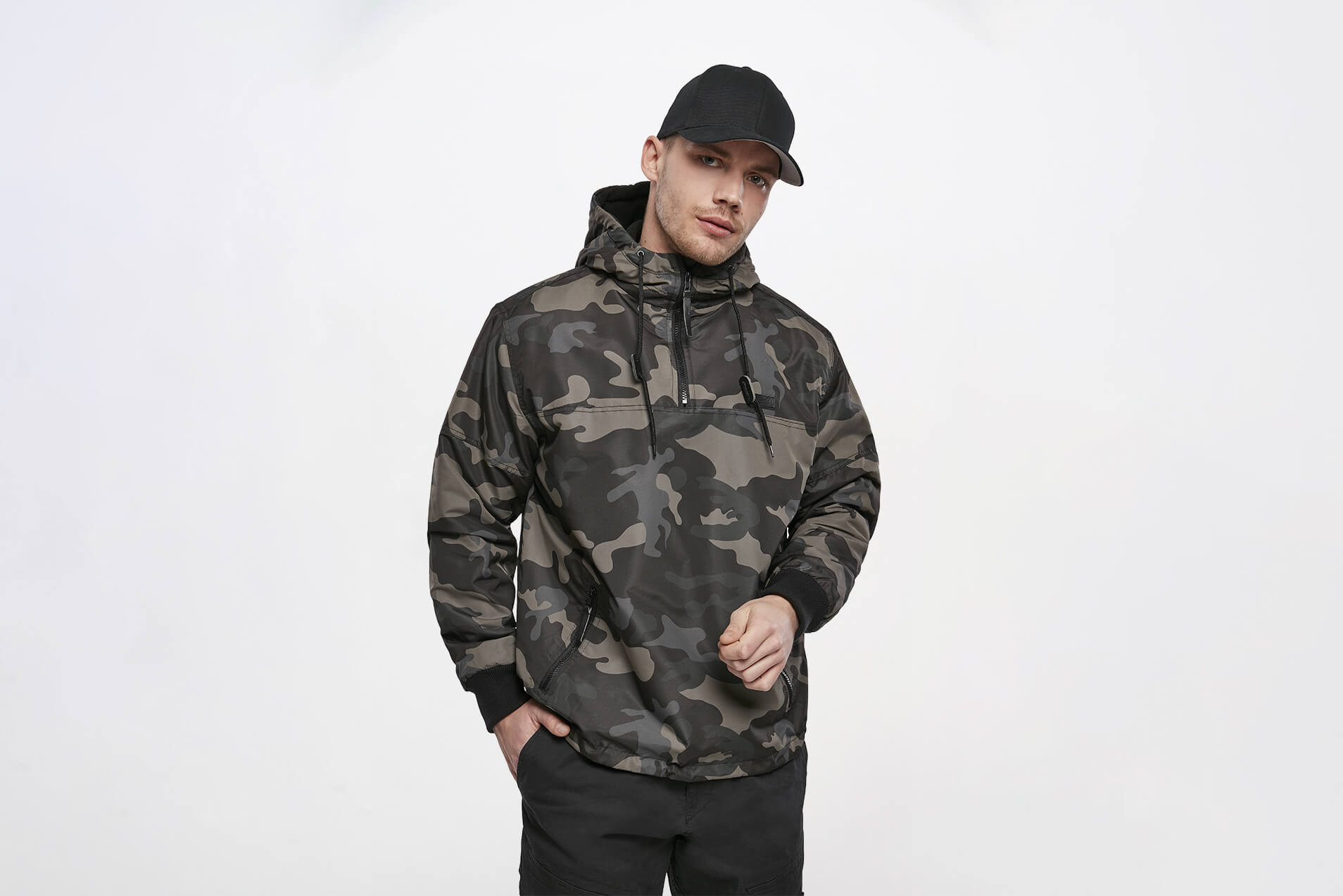 Fleecefutter / wind- und wasserabweisend / seitlicher, extralanger Reißverschluss / seitliche Einschubtaschen mit Reißverschluss / Rippbündchen am Ärmel / Tunnelkordelzug in der Kapuze / Brandit Leder Patch auf der Brust
