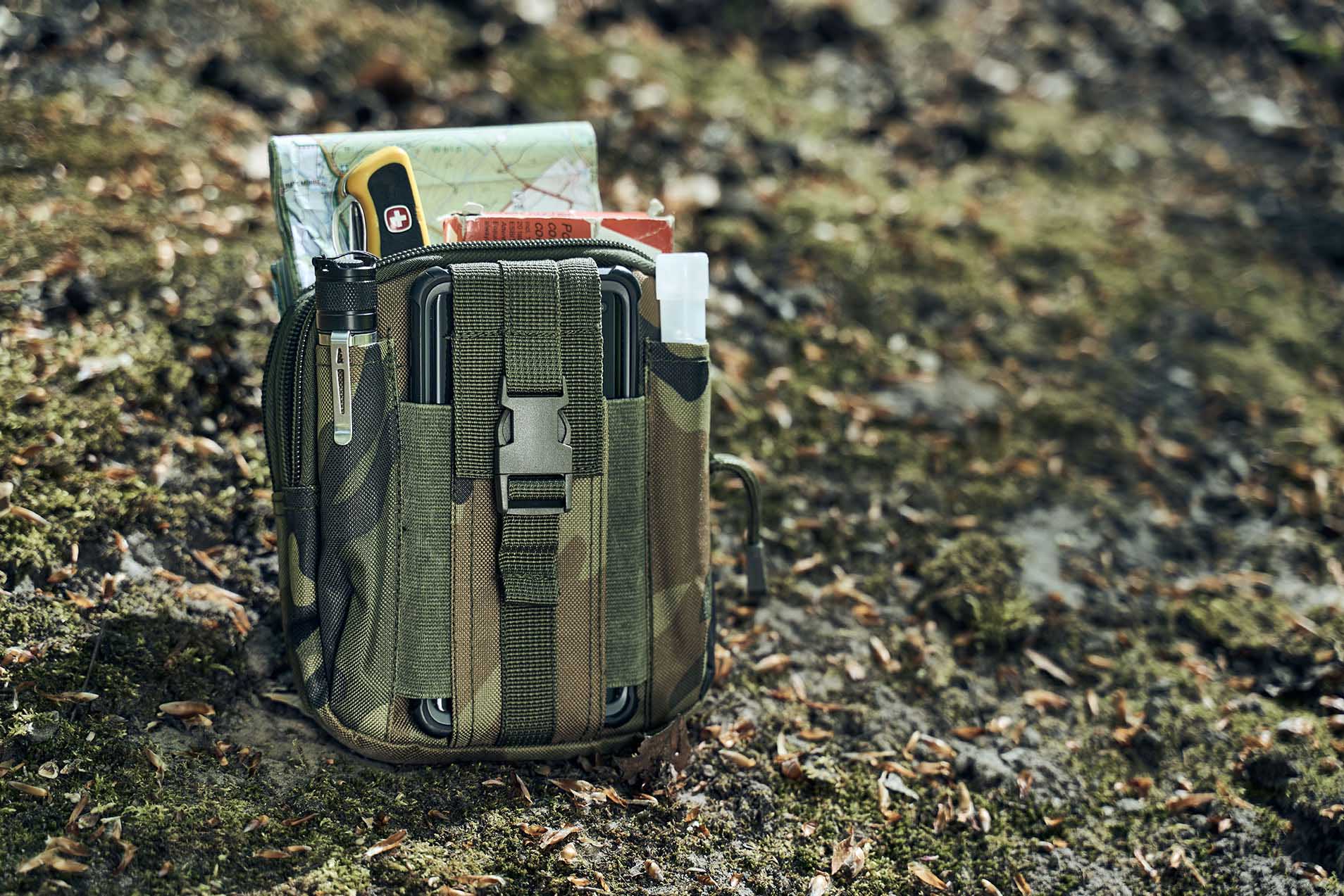 robustes 600DEN Polyester Material / hochwertiger Schnellverschluss / PALS-Befestigungsschlaufen für Molle-Systeme / auch an einfachen Gürteln zu tragen / 2 große, gepolsterte Hauptfächer / D-Ring / hochwertiger Reißverschluss mit Zip-Puller / große, flexible Smartphone-Fronttasche / zwei Stift bzw. Werkzeug Fronttaschen / ideal für Beruf, Freizeit und Sport