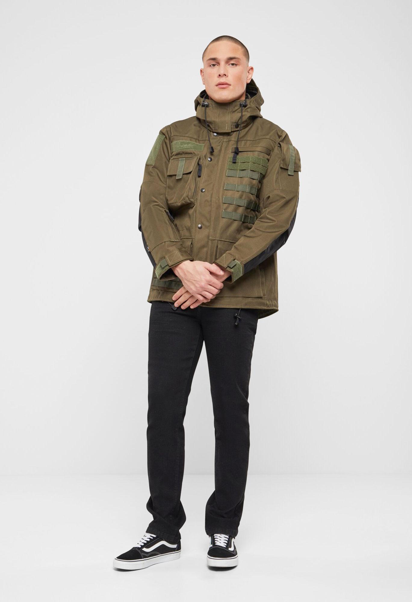 taktische, funktionelle Performance Jacke / Außenmaterial aus wasserabweisendem 900D-Polyester und 500D Cordura / stabiler 2 Wege YKK Reißverschluss mit hinterlegter Windschutzleiste / alle Reißverschlüsse (YKK) mit Zipper-Puller / atmungsaktives Mesh-Innenfutter / große Innentasche mit Reverse-Reißverschluss / einstellbare Taille und Saum mittels Kordelzug / mittels Reißverschlusses abtrennbare Kapuze / Kapuze mit zusätzlichem Schirm / einstellbare Kapuze mittels Klettverschlusses und Kordelzug / Klettfläche auf Oberarm, rechter und linker Brust / Oberarmtasche (auch passend für große Smartphones) / Cordura Verstärkung im Ellenbogenbereich / Armtaschen für Ellenbogen-Schützer / Ärmelabschlüsse mit Klettverschluss / Unterarmtasche mit Reverse-Reißverschluss / Molle-Bänder auf Brust und Tasche / 3 aufgesetzte Fronttaschen mit Klettverschluss und unterlegten, zusätzlichen Reißverschlussfächern / 1 verdeckte Fronttasche mit Reverse-Reißverschluss / Ventilationsöffnungen