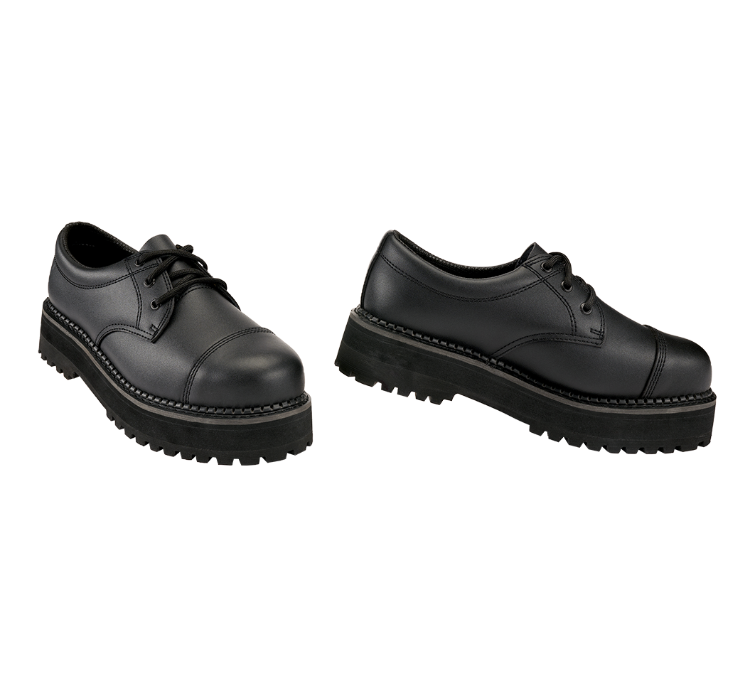 10 Loch Schnürung / Geklebte und genähte Plateau-Profilsohle / Stahlkappe