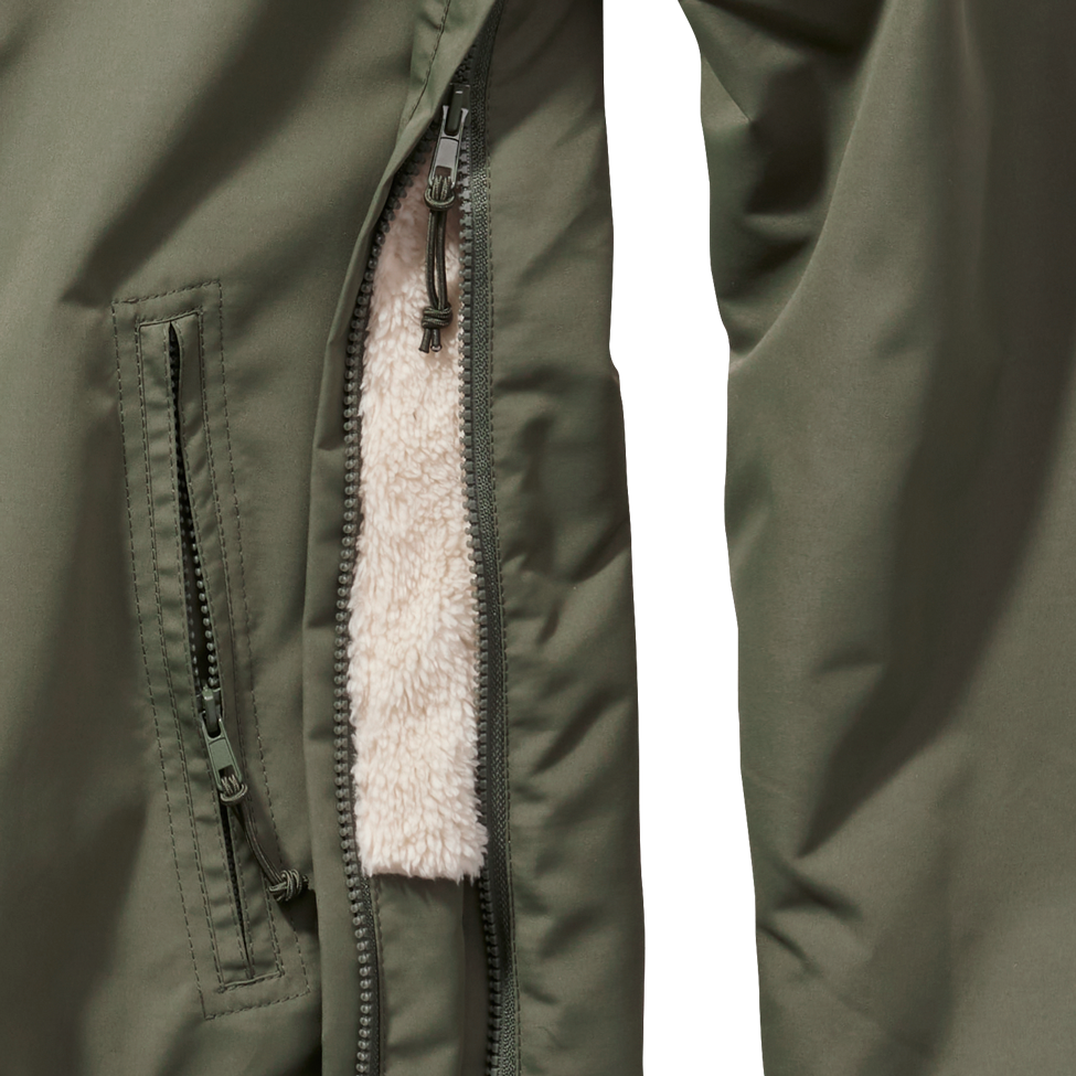 warmes Teddyfell-Futter / wind- und wasserabweisendes Außenmaterial / gefütterte Kapuze mit Tunnelzug und Kordelstopper / Kinnschutz und Windschutzleiste am Kragenreißverschluss / hochwertiger Seitenreißverschluss für leichteres An- und Ausziehen / Hüftbund mit Tunnelzug und Kordelstopper / verstellbarer Ärmelabschluss mit Klett / 1 große Brusttasche mit Reißverschluss / 2 seitliche Einschubtaschen mit Reißverschluss / alle Zipper mit Zughilfe
