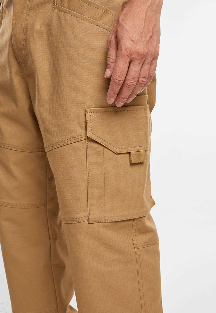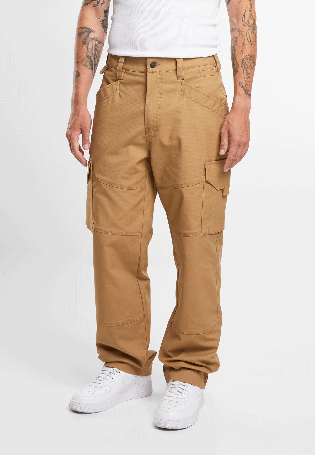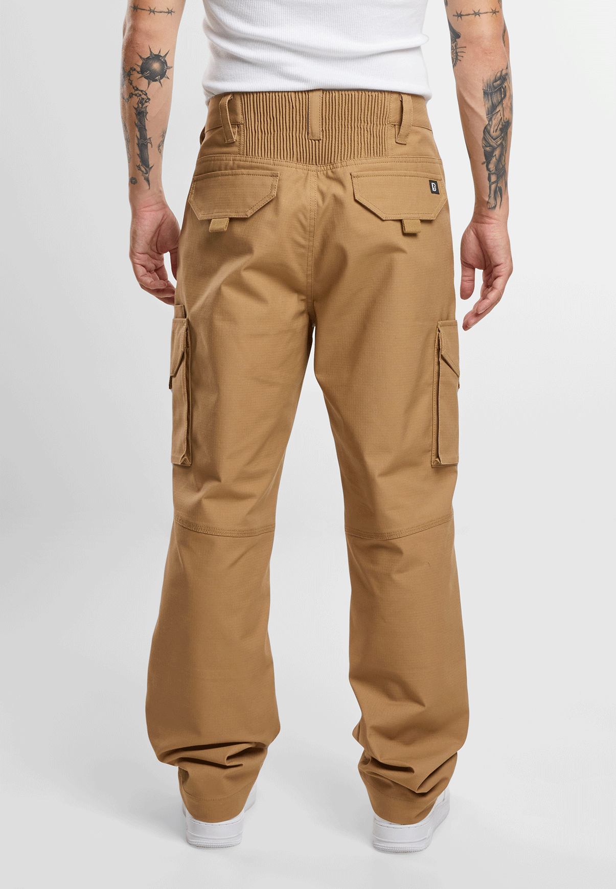 Bund mit elastischem Gummieinsatz / 2 große Einschubtaschen / 2 Gesäßtaschen mit Taschenpatte und Klettverschluss / 2 seitlich aufgesetzte Beintaschen mit Taschenpatte und Klettverschluss / doppelt abgenähter Kniebereich / robustes Ripstopmaterial / hoher Tragekomfort / diverse Gürtelschlaufen / gerader Schnitt / 1 Schlüsselschlaufe