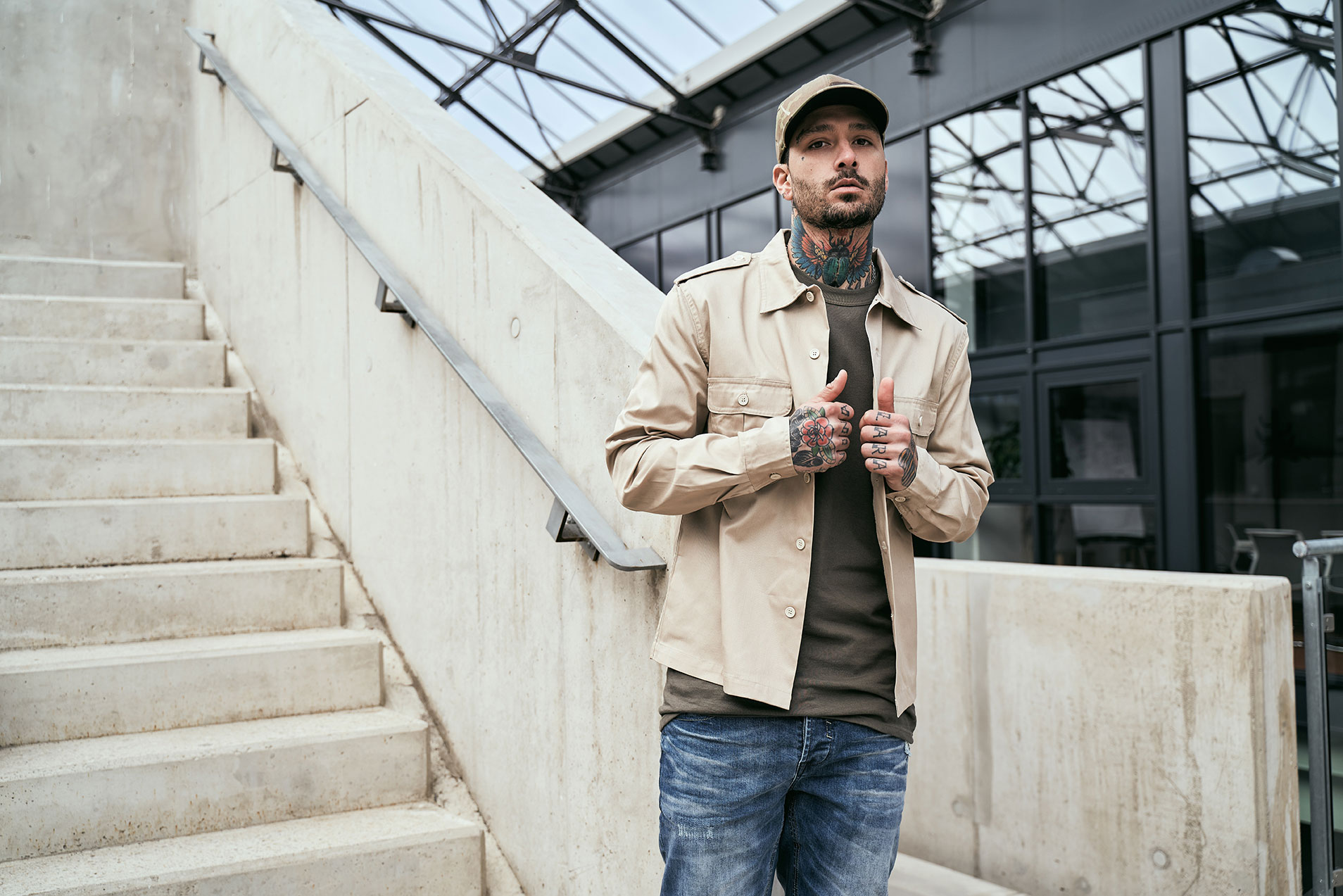 wasserabweisendes, robustes Mischgewebe / gerader Schnitt / aufgesetzte Brusttaschen / Schulterklappen