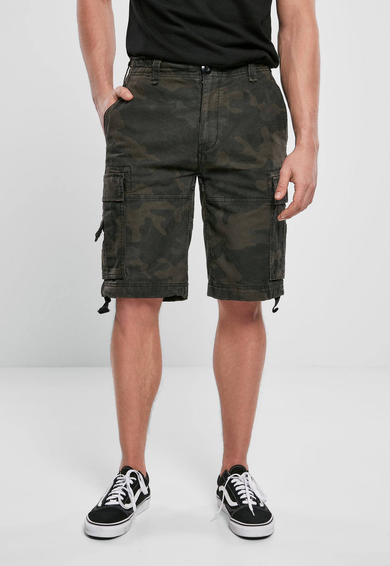 schwere Baumwollqualität / klassischer Cargoschnitt / 2 schräge Einschubtaschen / Tunnelzug / gewaschene Baumwolle