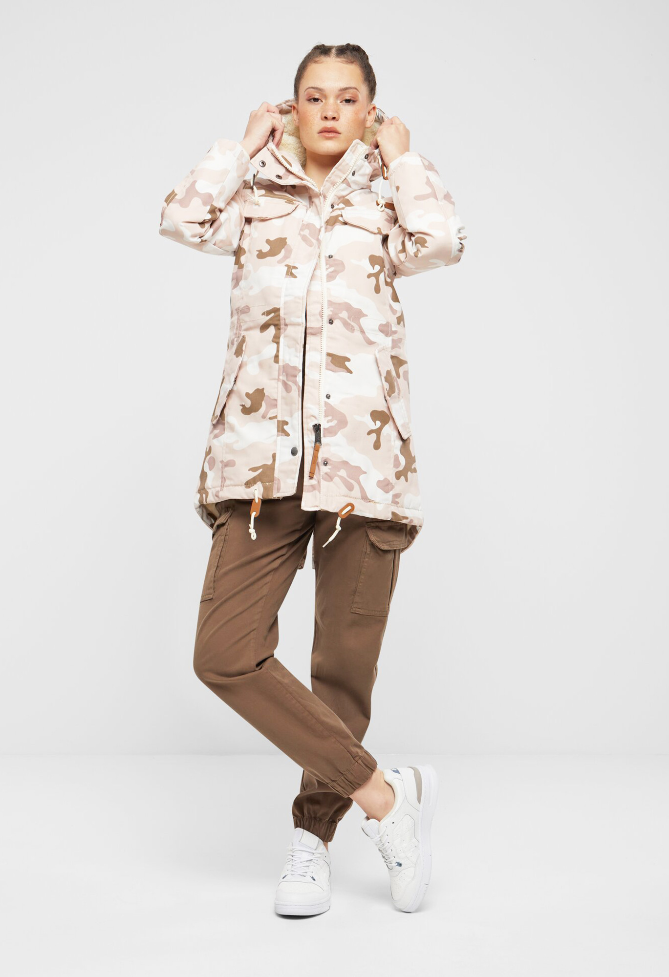 hochwertiger Damen Fishtail Parka / gestepptes Innenfutter und kuscheliges Teddyfell / zahlreiche Taschen / Taillenzug / hochwertige Kunstlederapplikationen