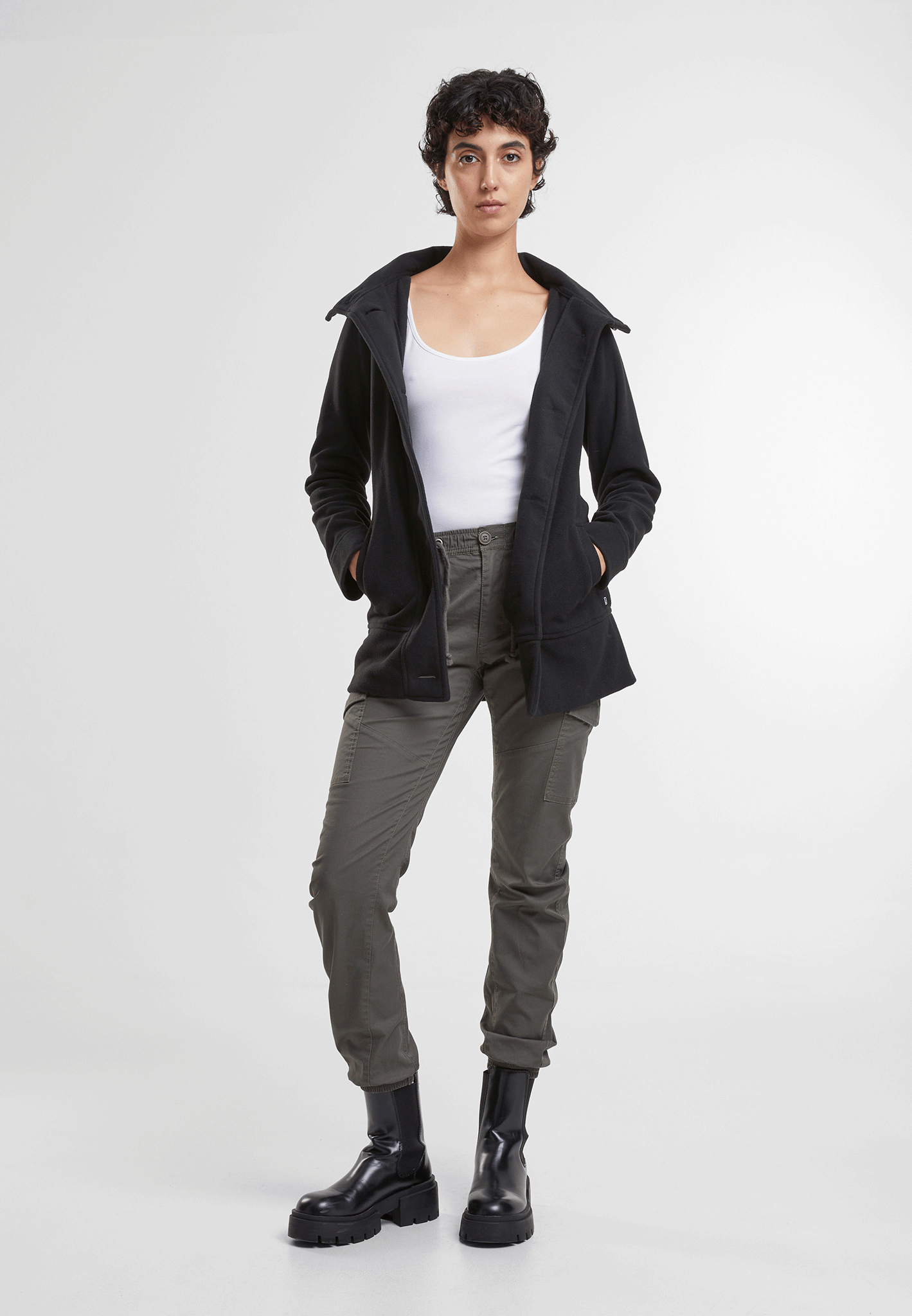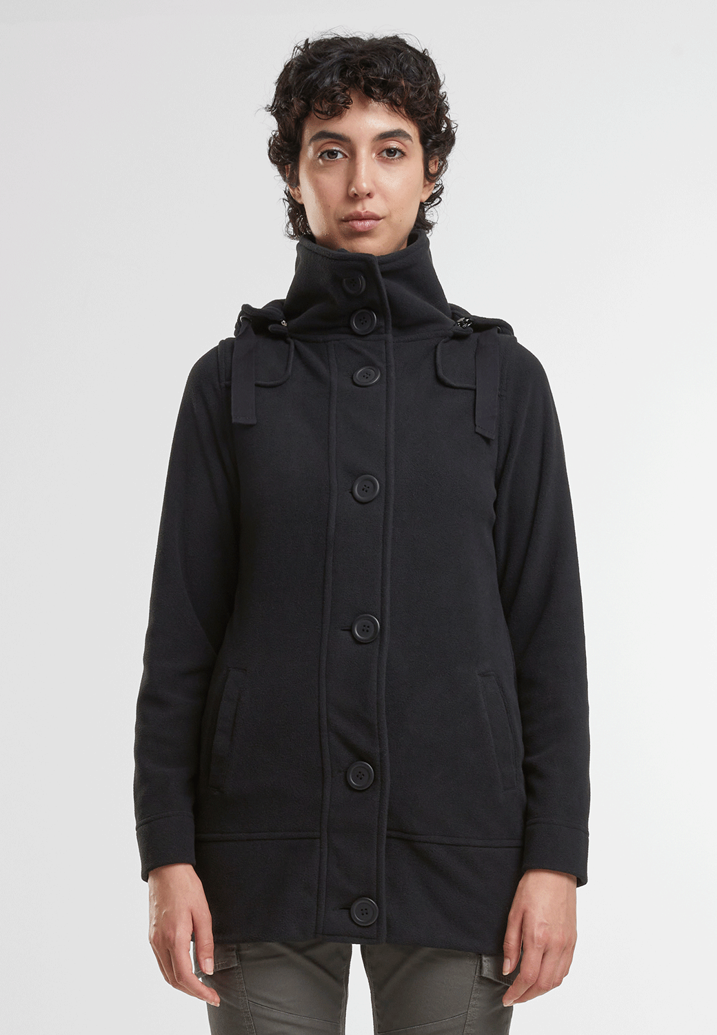 zeitlose, modische Fleecejacke für Damen / hautfreundliches, unkompliziertes Fleecematerial (250g je m²) / kuschelige Kapuze mit Tunnelzug / Kapuze per Reißverschluss abtrennbar / Knopfverschluss / zwei seitliche Einschubtaschen / Rückenriegel / dezentes Logolabel