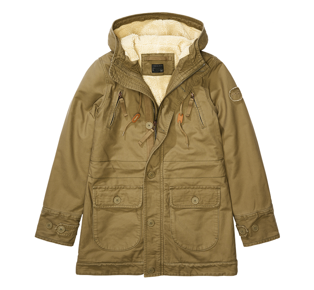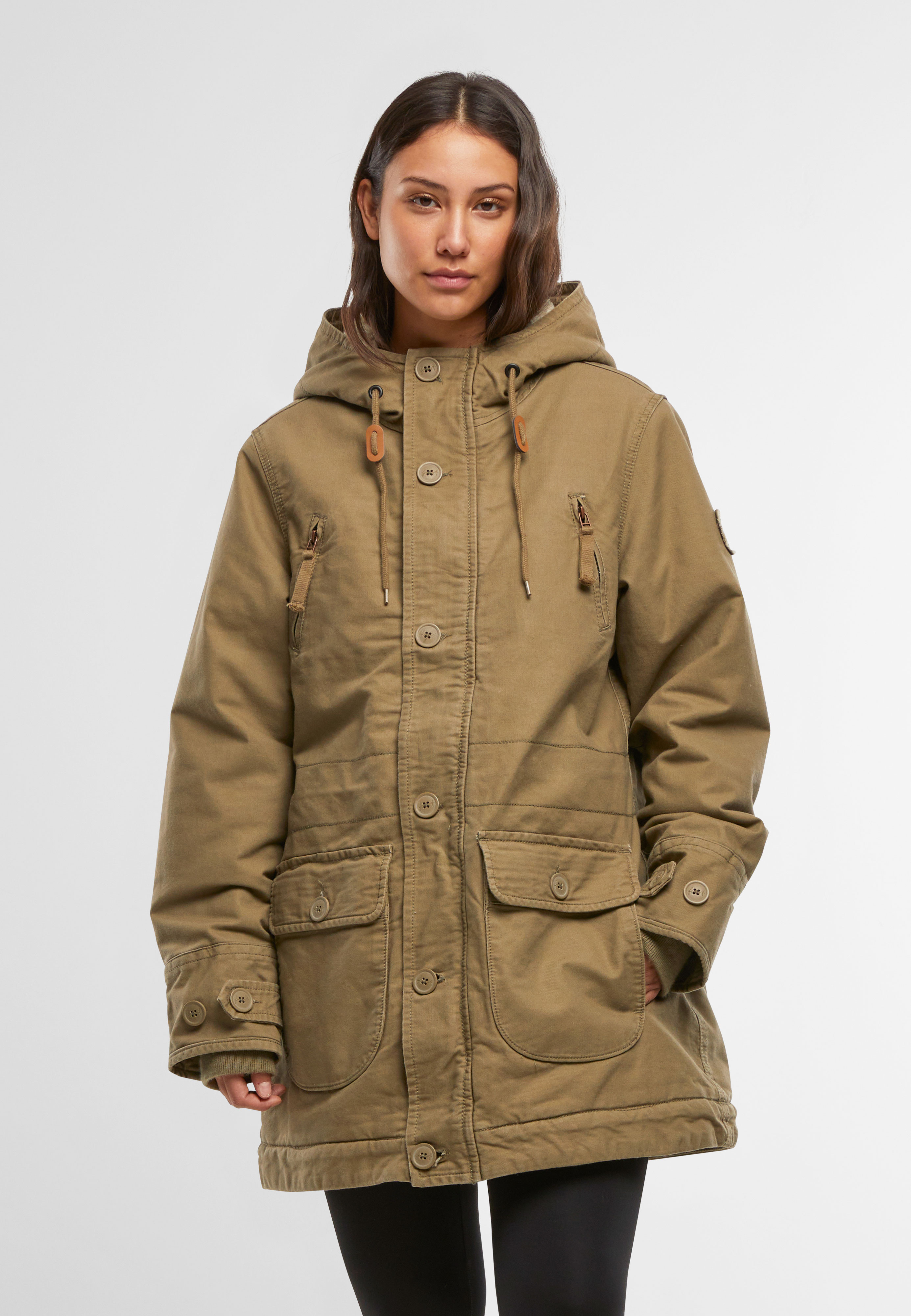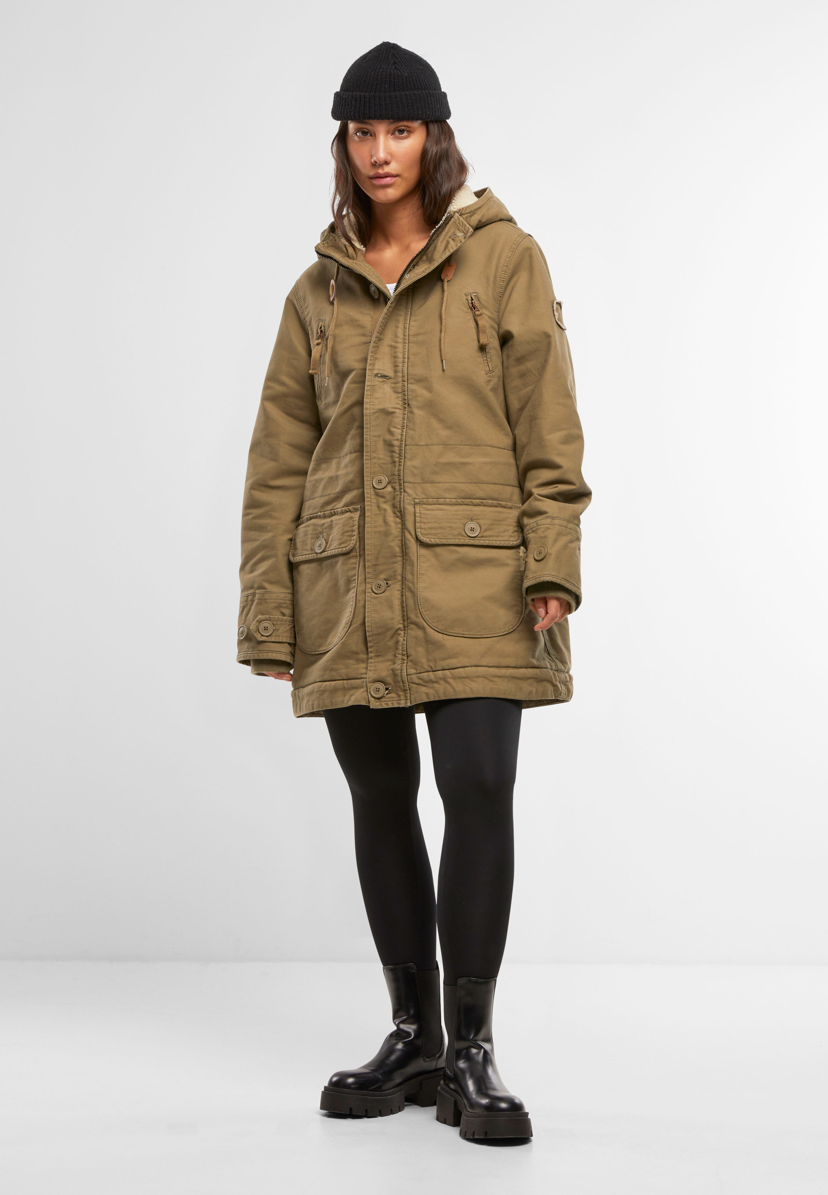 Women’s parka / teddy lining / high wearing comfort / hood / 4 patch pockets / inside pocket / drawstring for waist adjustment