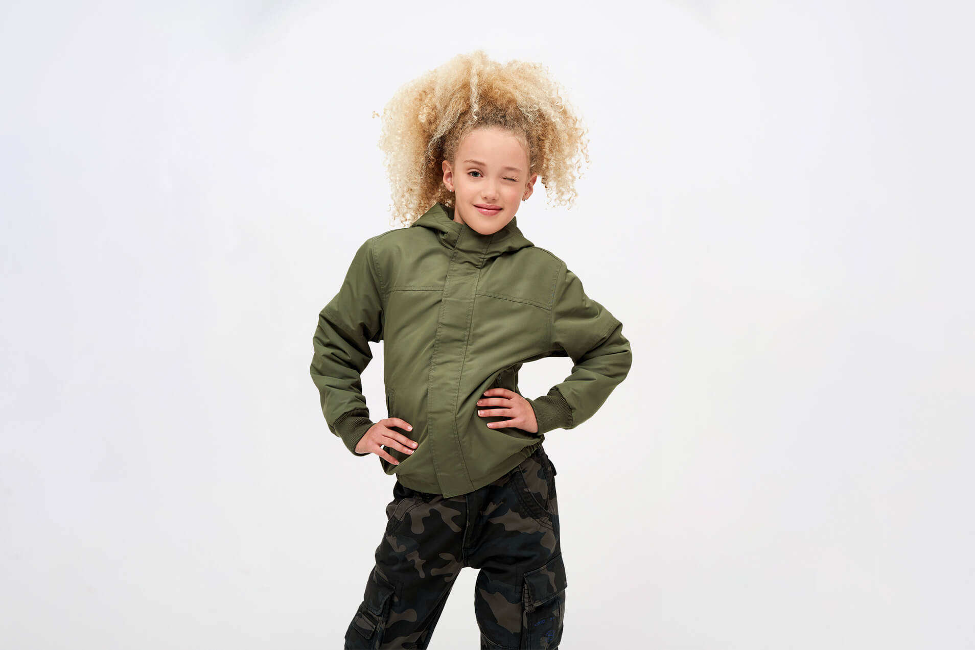 warm, cuddly fleece lining / wind- and water-repellent outer material / robust front zipper / wind protection flap with hook and loop fastener / lined hood with elastic / arm cuffs with soft, elastic cuffs / two side slit pockets with zipper / inside pocket with hook and loop fastener