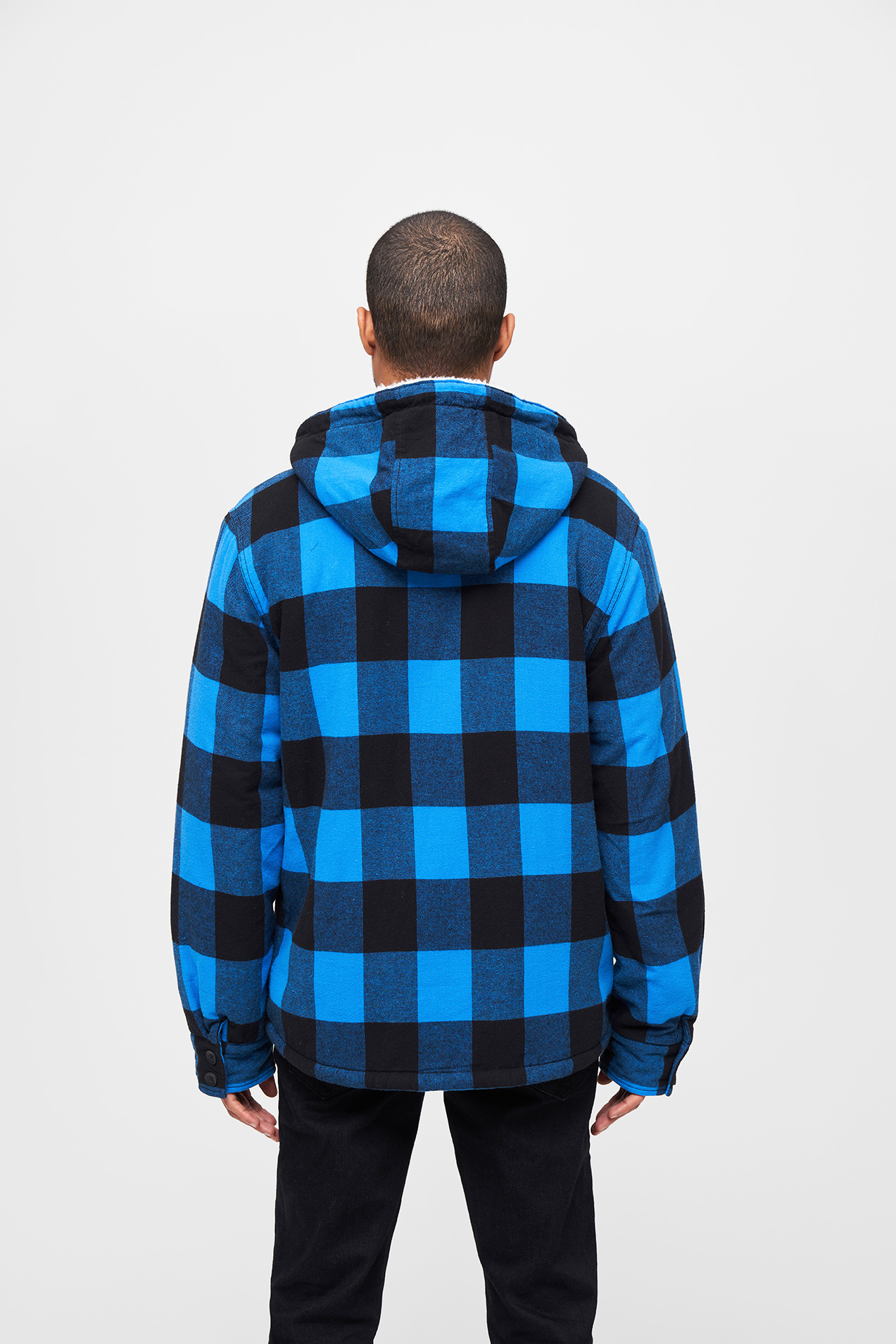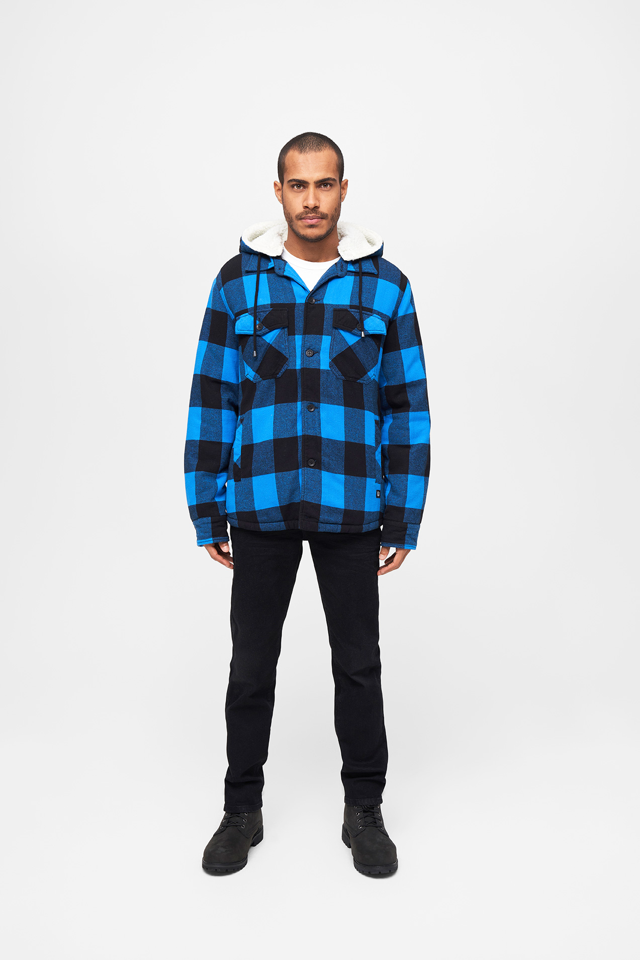padded flannel-jacket with teddy fur/ detachable hood with drawstring / 2 breast pockets / 2 side pockets / 1 inside pocket / button-tape closure / straight cut (straight-cut)