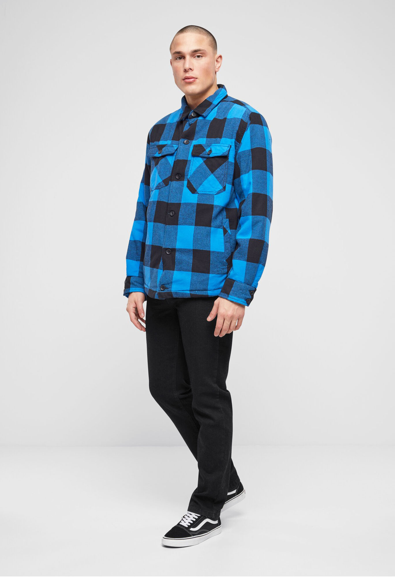 padded flannel-jacket with teddy fur/ detachable hood with drawstring / 2 breast pockets / 2 side pockets / 1 inside pocket / button-tape closure / straight cut (straight-cut)