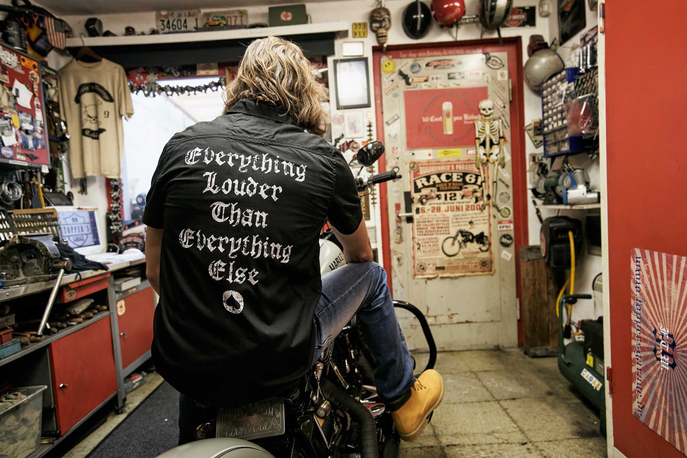 large "Everything Louder Than Everything Else" print on the back / Motörhead lettering on the chest / removable Warpig metal pin / straight cut / light weight quality / front pockets