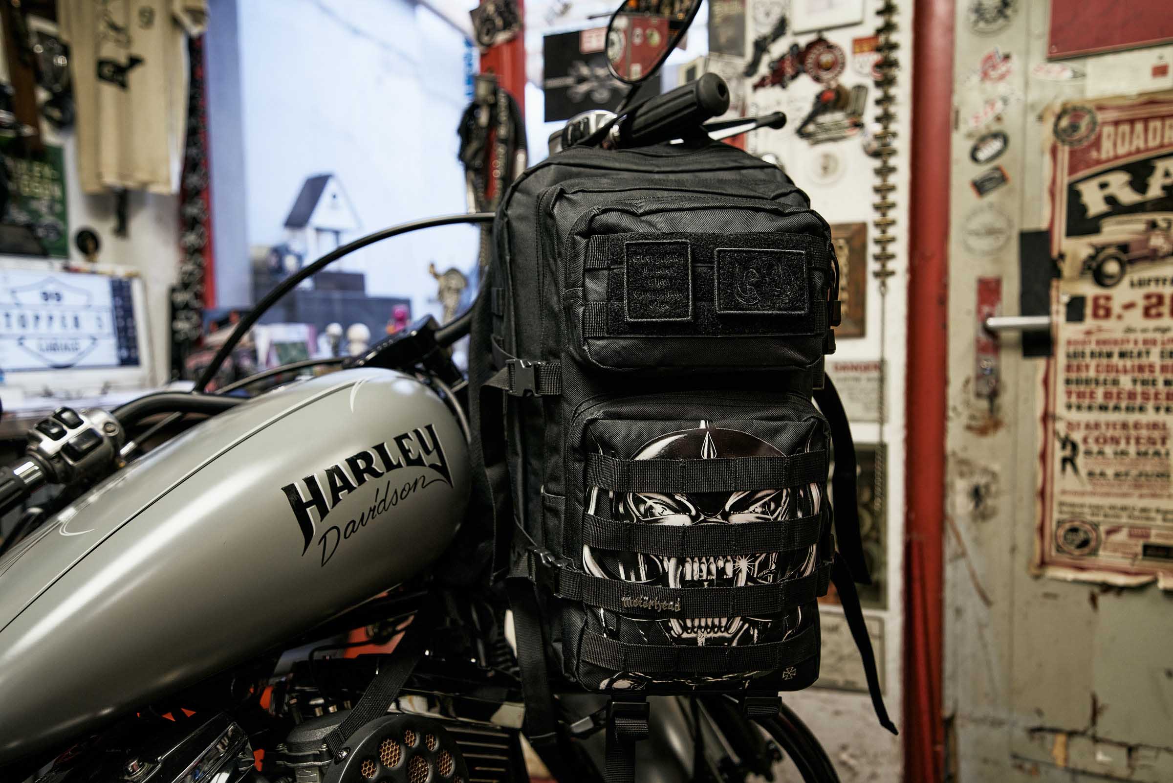 Warpig print on the front / Motörhead lettering on the back / two removable patches on the hook and loop area / removable Motörhead metal pin / MOLLE-system / padded shoulder straps / frontpocket with organizer / adjustable fixband / compression straps