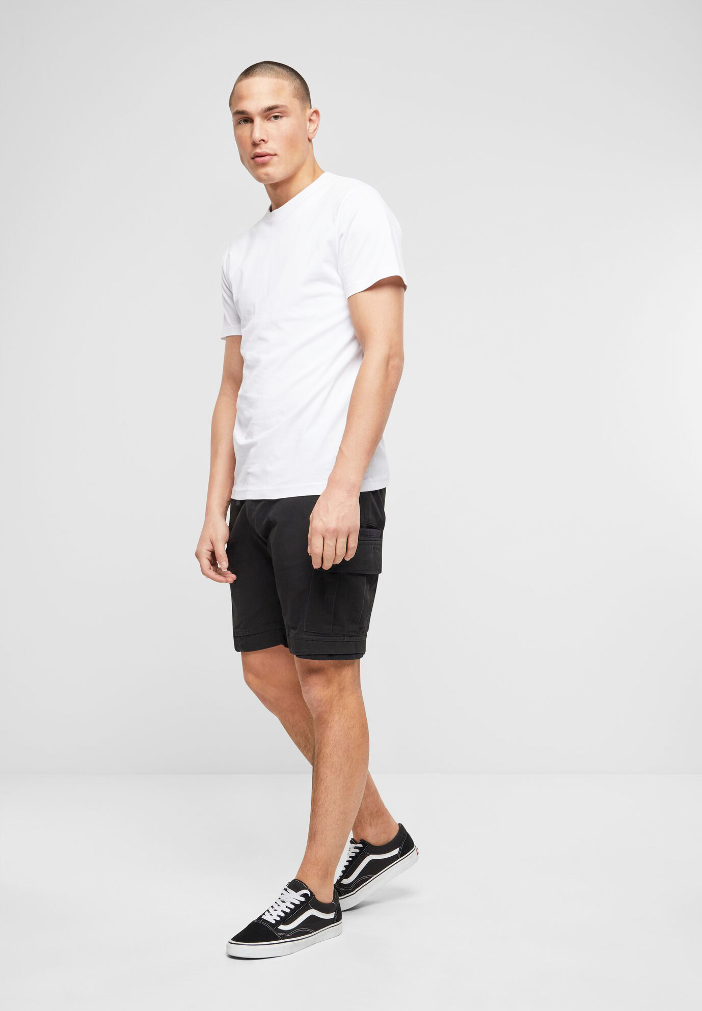 casual, durable leisure shorts / skin-friendly, robust cotton material / elastic waistband with drawstring for a perfect fit / leg end with stylish cuff element / two side pockets / two back pockets with button closure / two practical cargo pockets with button closure / zip closure