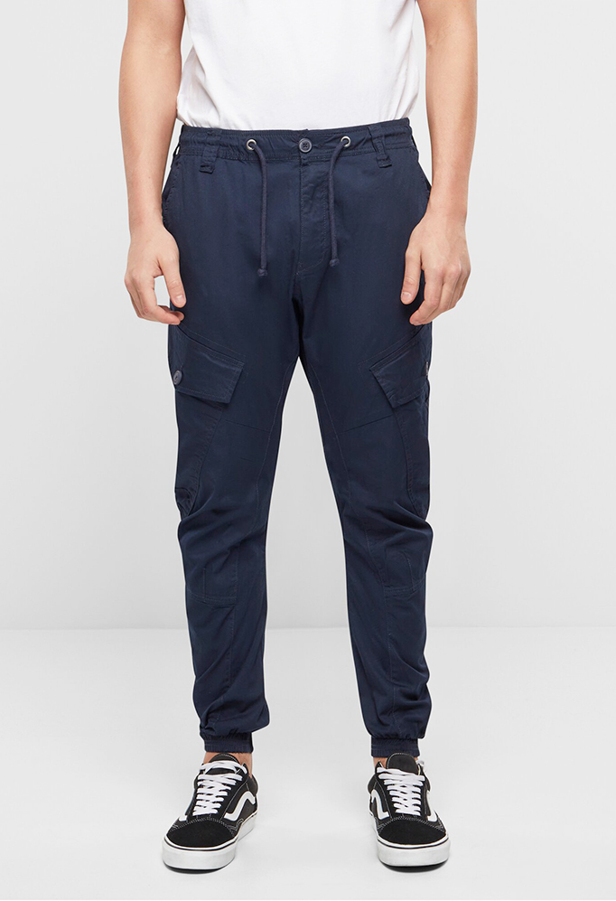 leightweight summer "paper touch" material / high wearing comfort due to elastan / slim cut / elastic waist and drawcord / two back pockets / enforced backside / Zipper / two side pockets / two large leg pockets with button lock / flexible band at legend