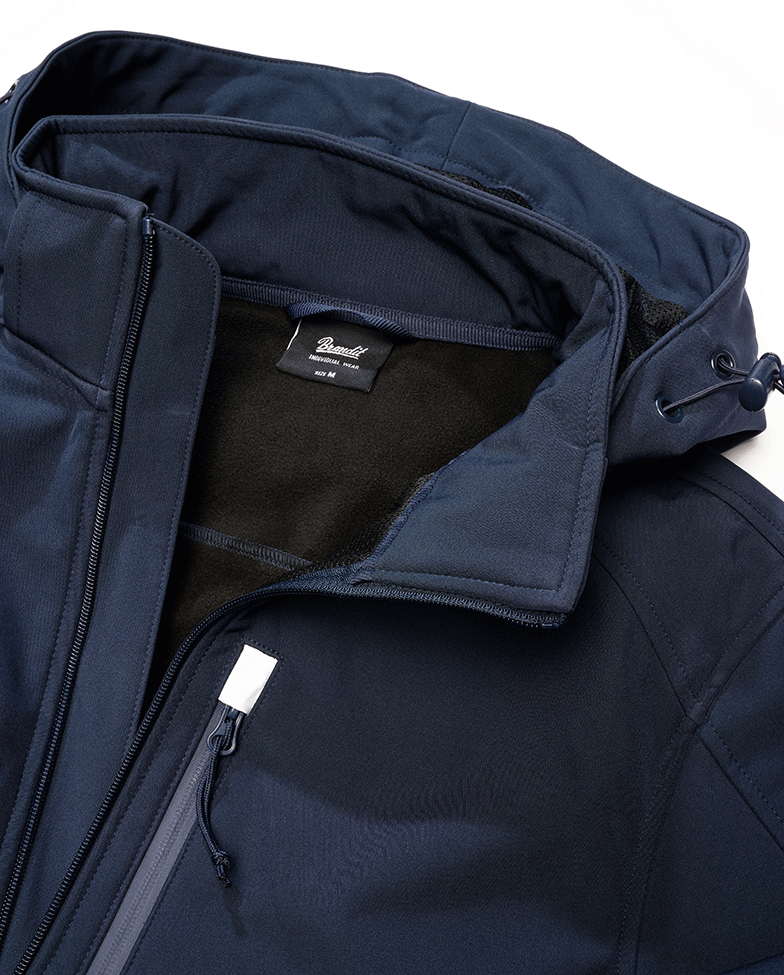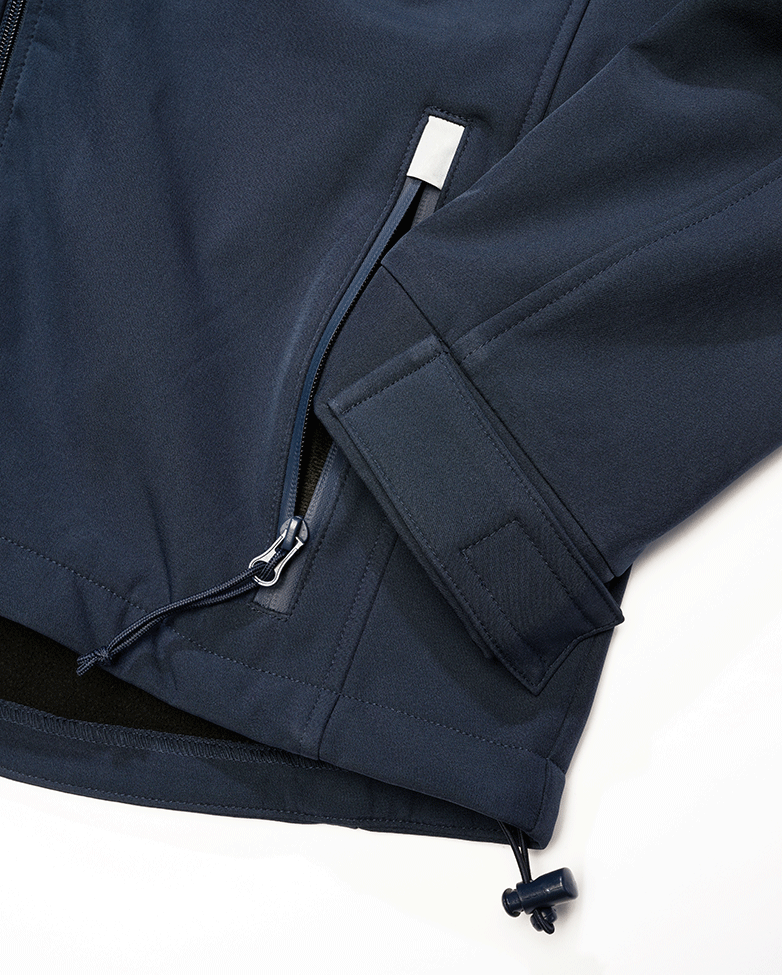 Softshell jacket / 3000mm water column / Waterproof zippers / Reflectors / Inside pocket / Mesh and fleece lining / Elastic drawstring at hem / Straight cut / Adjustable sleeve ends