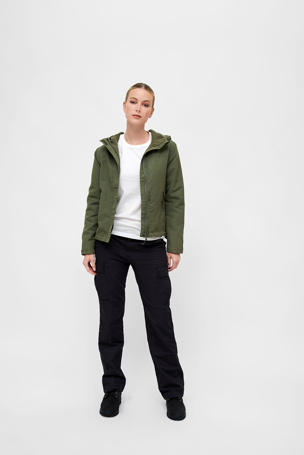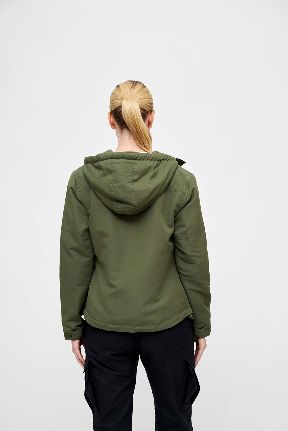 warm fleece lining / wind and water repellent outer material / stable front zipper / storm flap with hook and loop / lined hood with drawstring /arm cuff with hook and loop closure / two side pockets with zipper / inside pocket