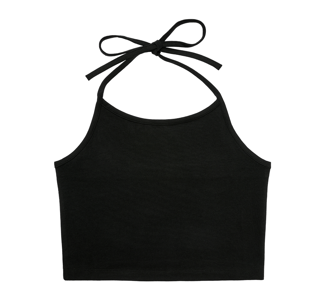neck top made from single jersey / tie straps / short cut / elastic band at the back / Oeko-Tex Standard 100