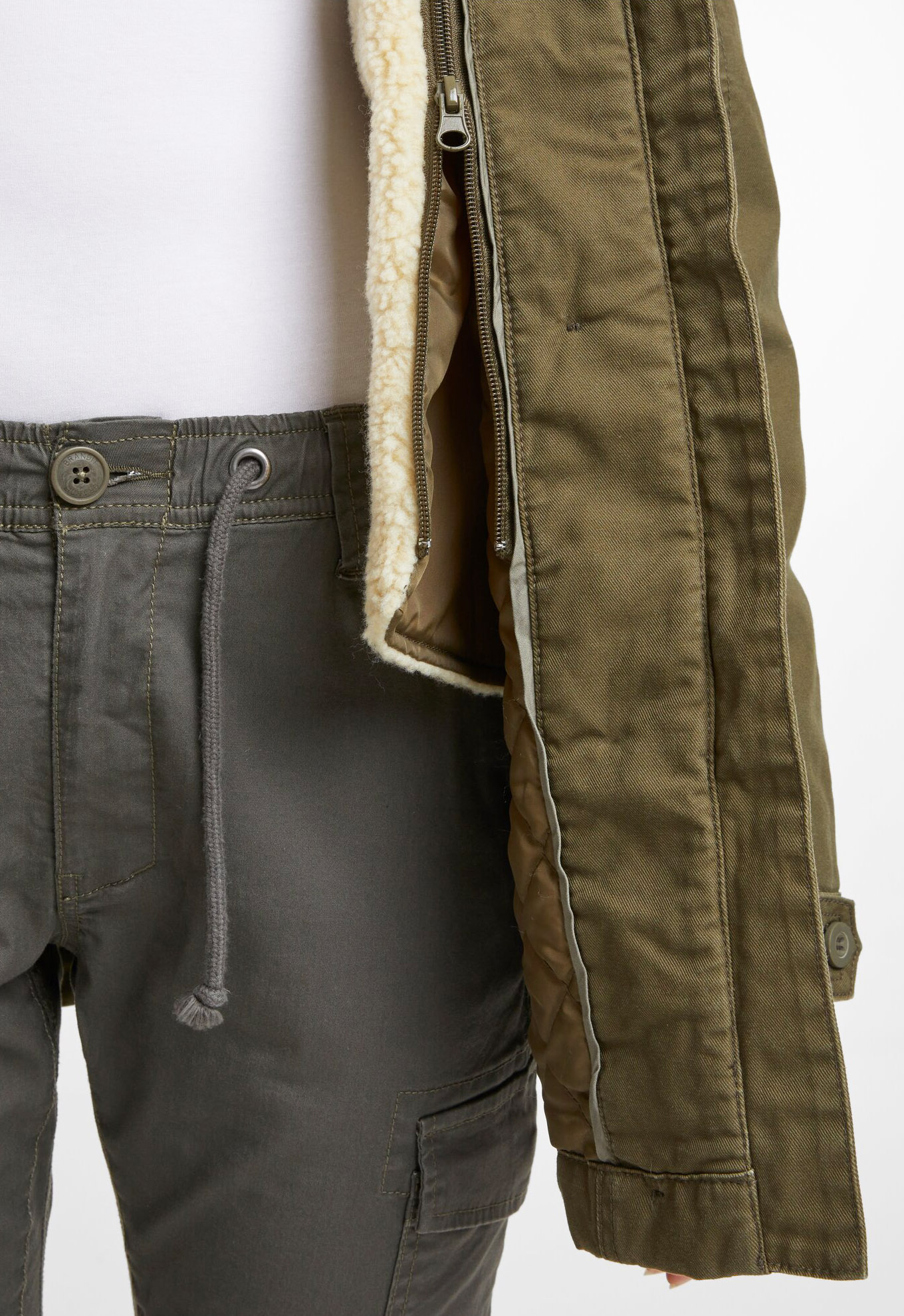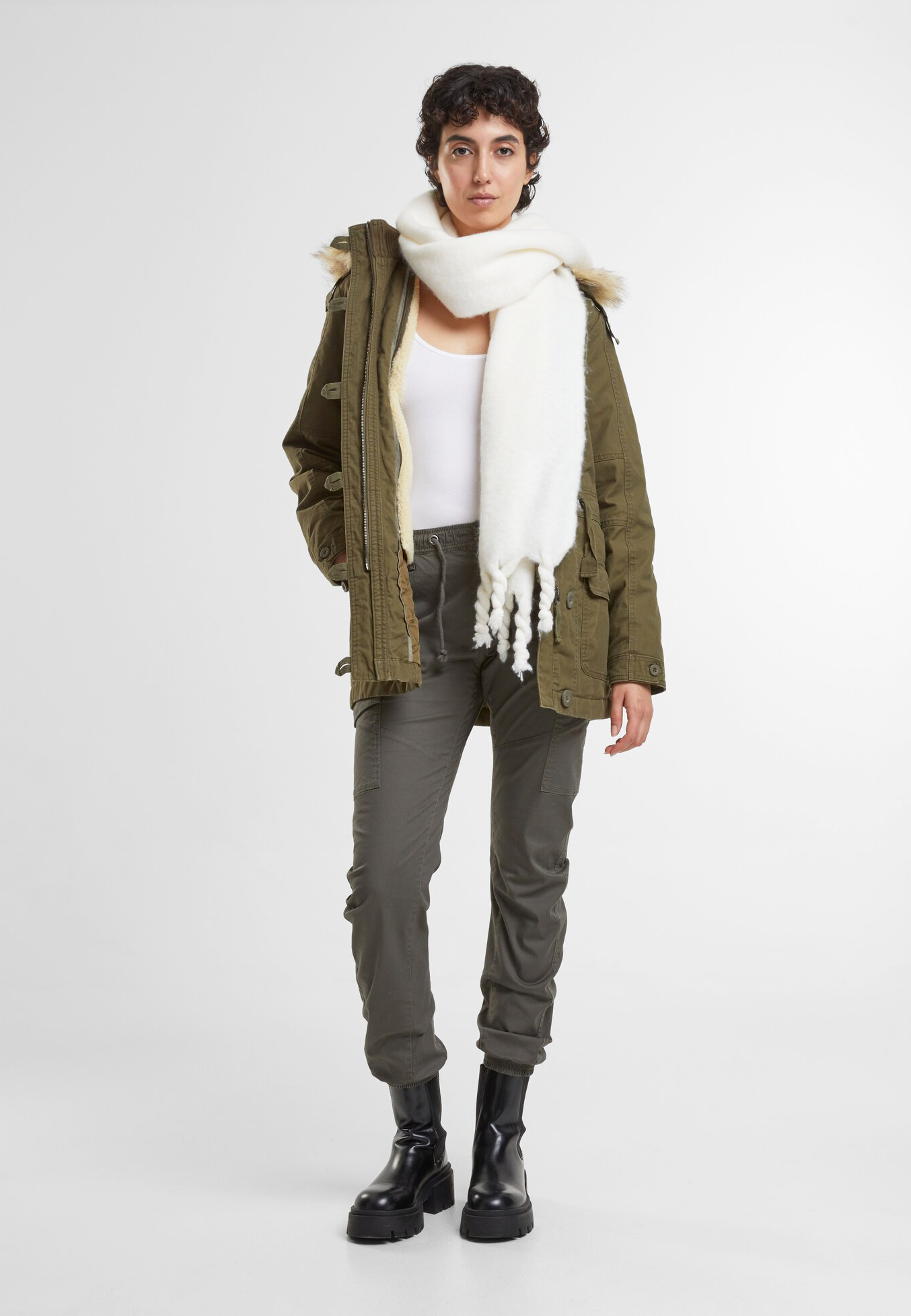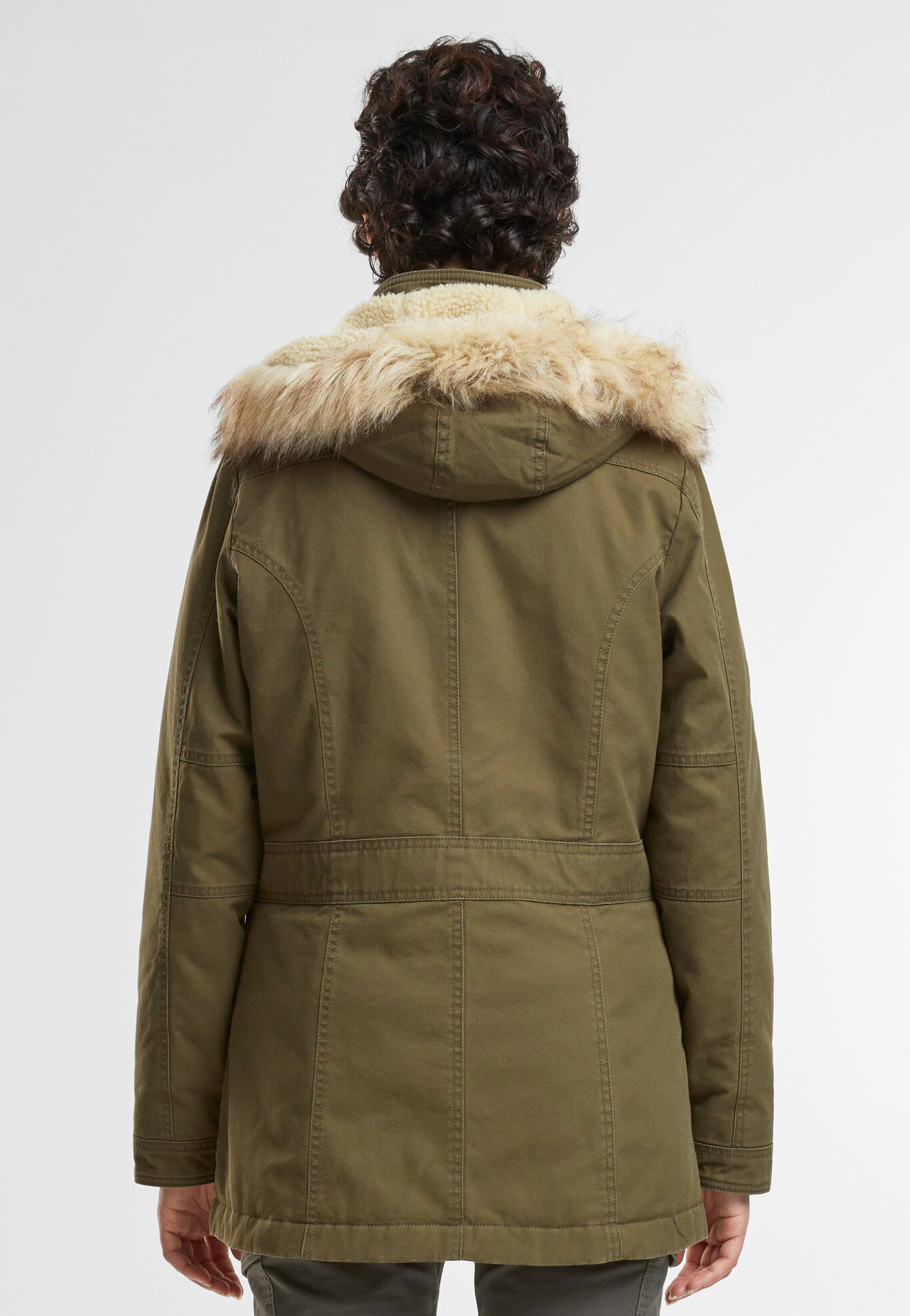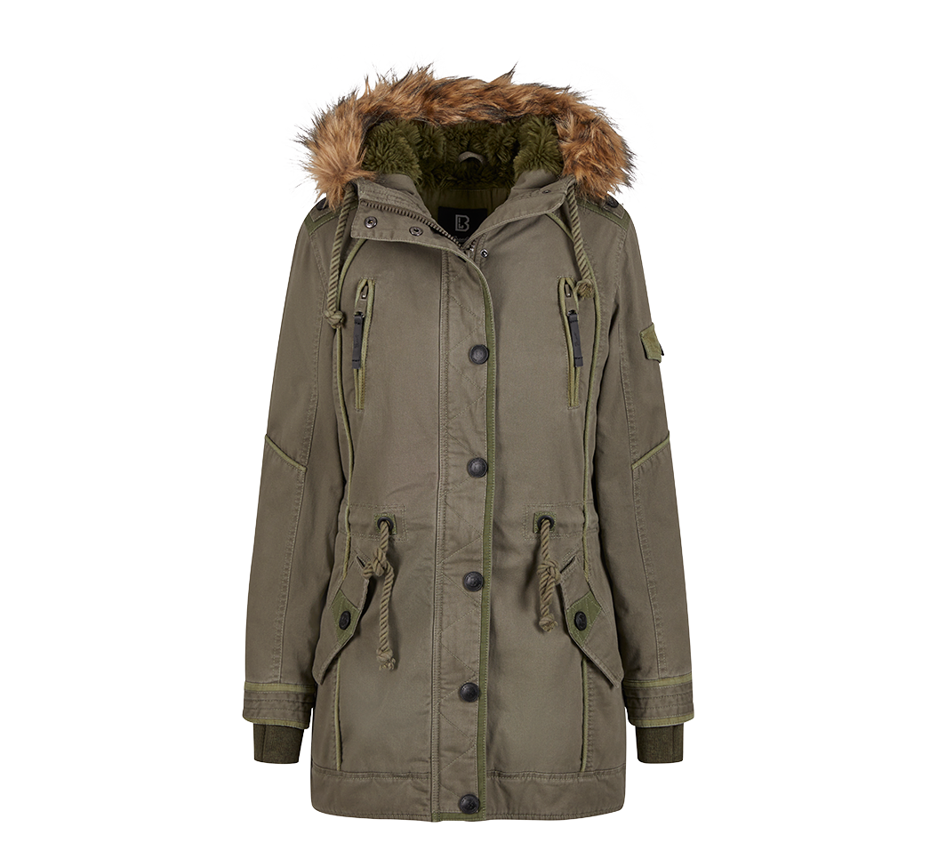 Warm and stylish parka / drawstring waist / 2 patch pockets / zipper with wind flap / lined / hood with teddy lining / detachable faux fur collar / knitted ribbed cuffs / inside pocket / high collar / very comfortable to wear